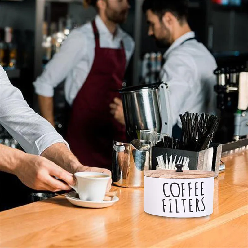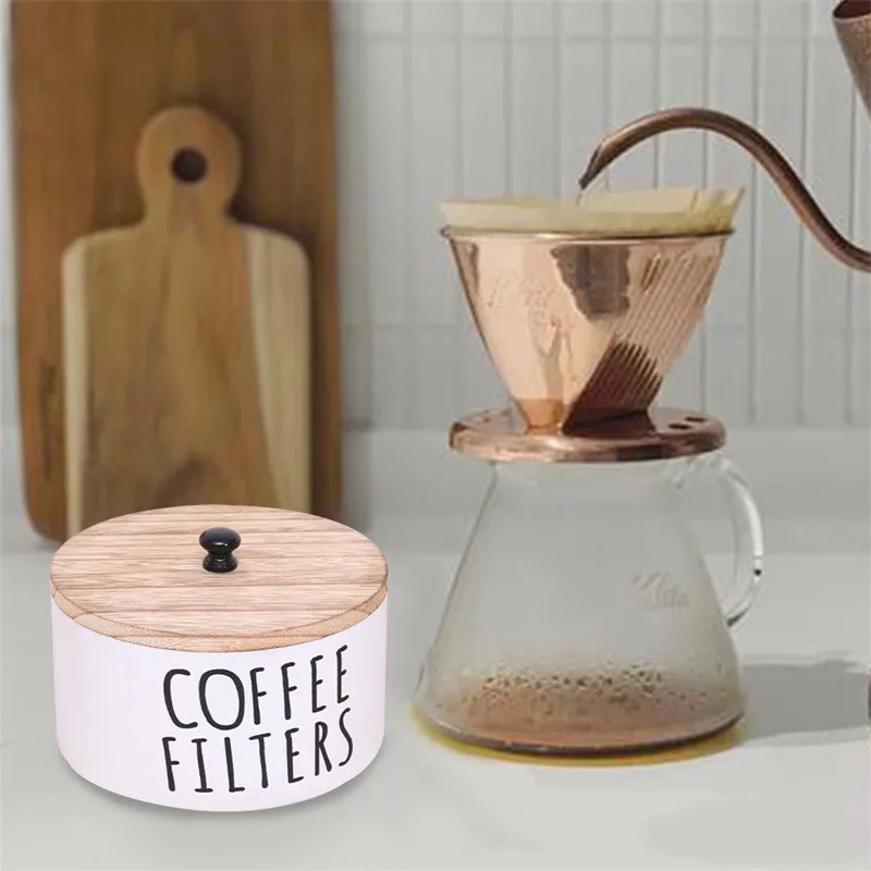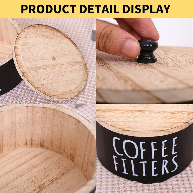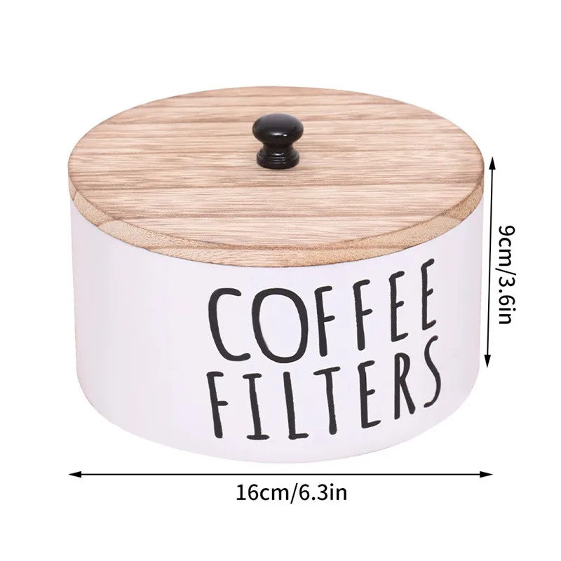 Coffee Storage Box For Cake Shape Paper Coffee Filters Wooden Coffee Filter Storage Container with Lid Coffee Filter Dispenser
