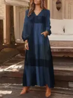 Be the first to review “Color Blocked V-neck Long Sleeved Printed Casual Women’s Dress Street Fashion Artistic Retro Style Autumn Dresses”