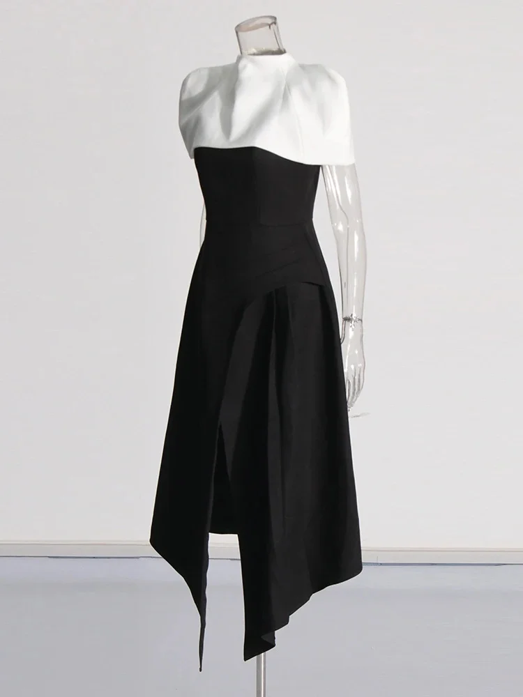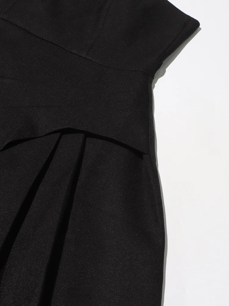 Colorblack Slimming Elegant Long Dress Women Square Collar Sleeveless High Waist Pleated Evening Dresses Female Style New