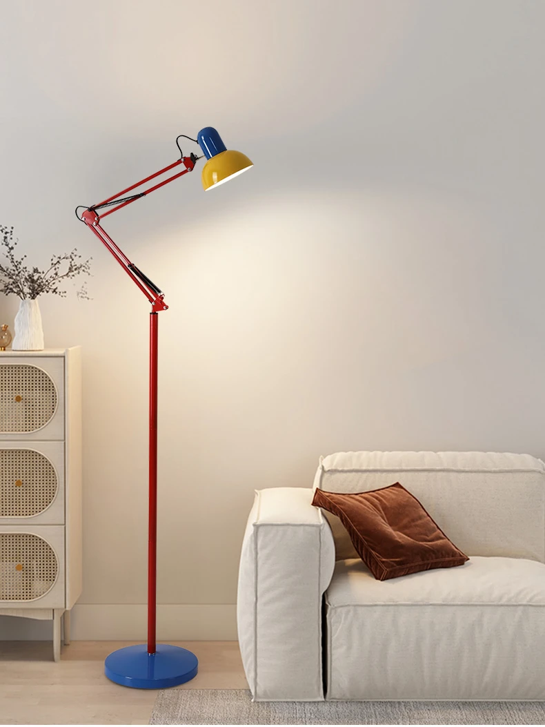 Colorful Metal Long Arm Floor Lamp, Retractable and Rotatable Station Lamp, Living Room, Bedroom, Art Decoration E27 Bulb