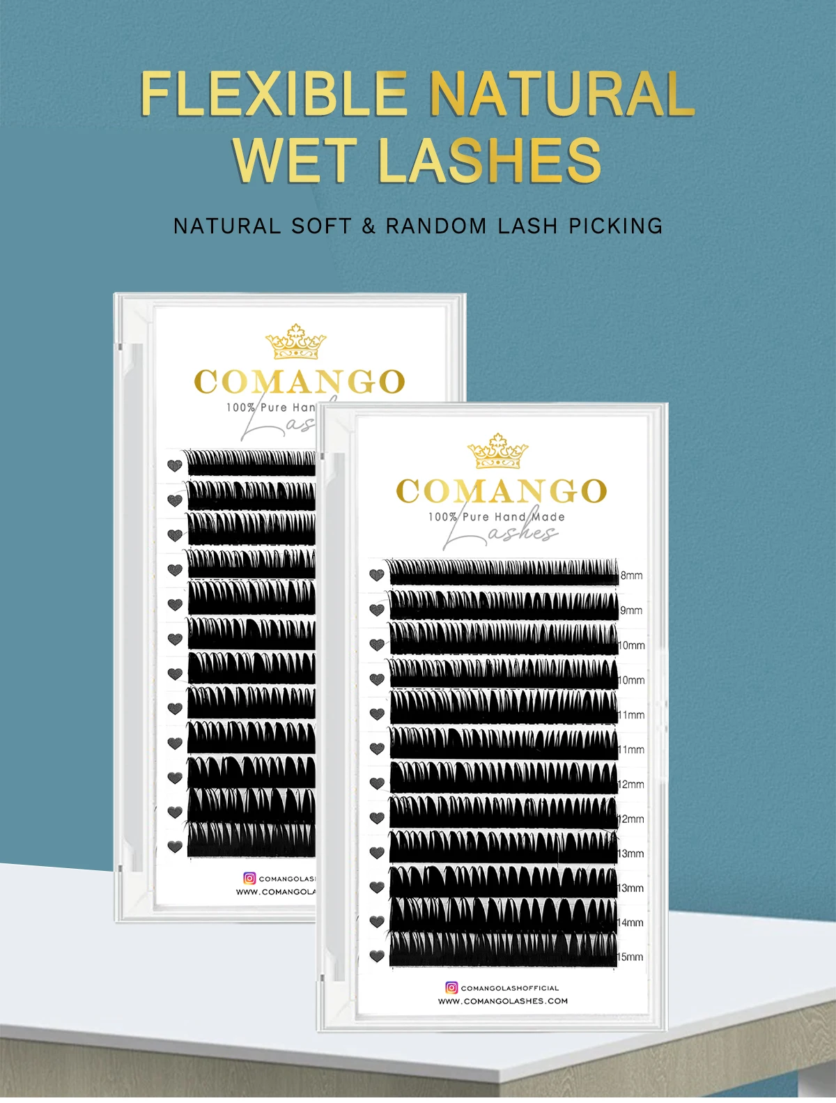 CoMango Wet Lashes Flat Root Easy Grafting Cosplay Anime Manga Eyelashes Extension Soft Natural Beauty Makeup Supplies