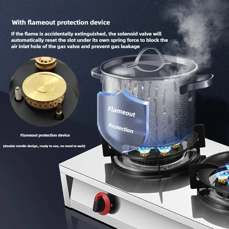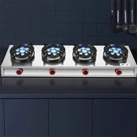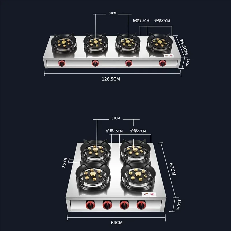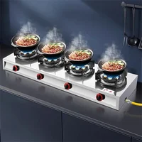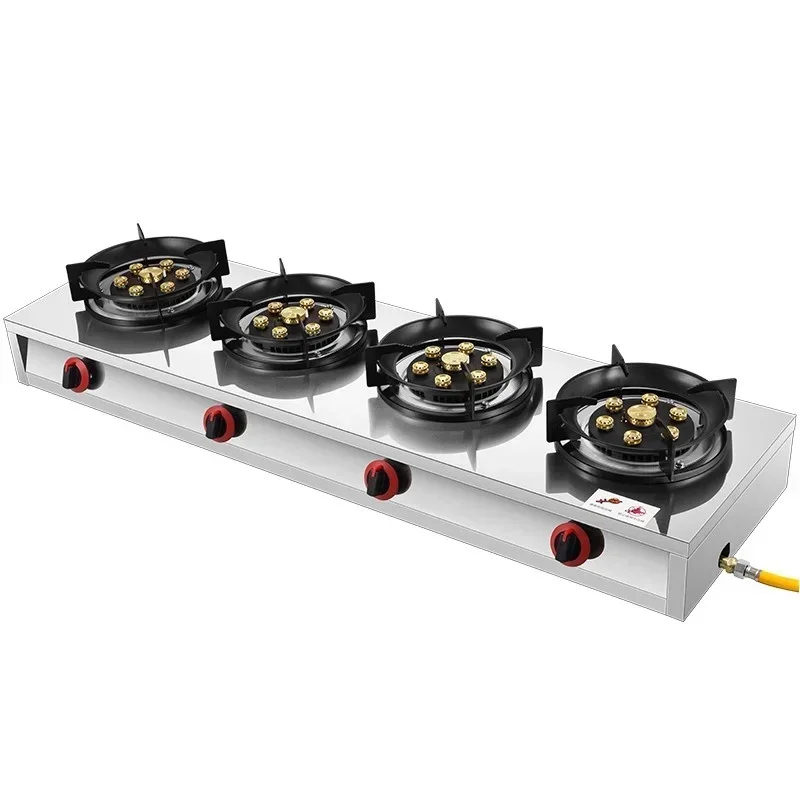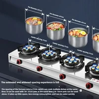 Commercial Clay Pot Stove with Flameout Protection Multi-burner Gas Stove 2/3/4 Burner Cooktop Stainless Steel Fierce Fire Stove