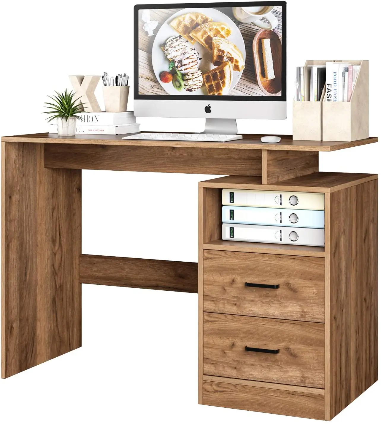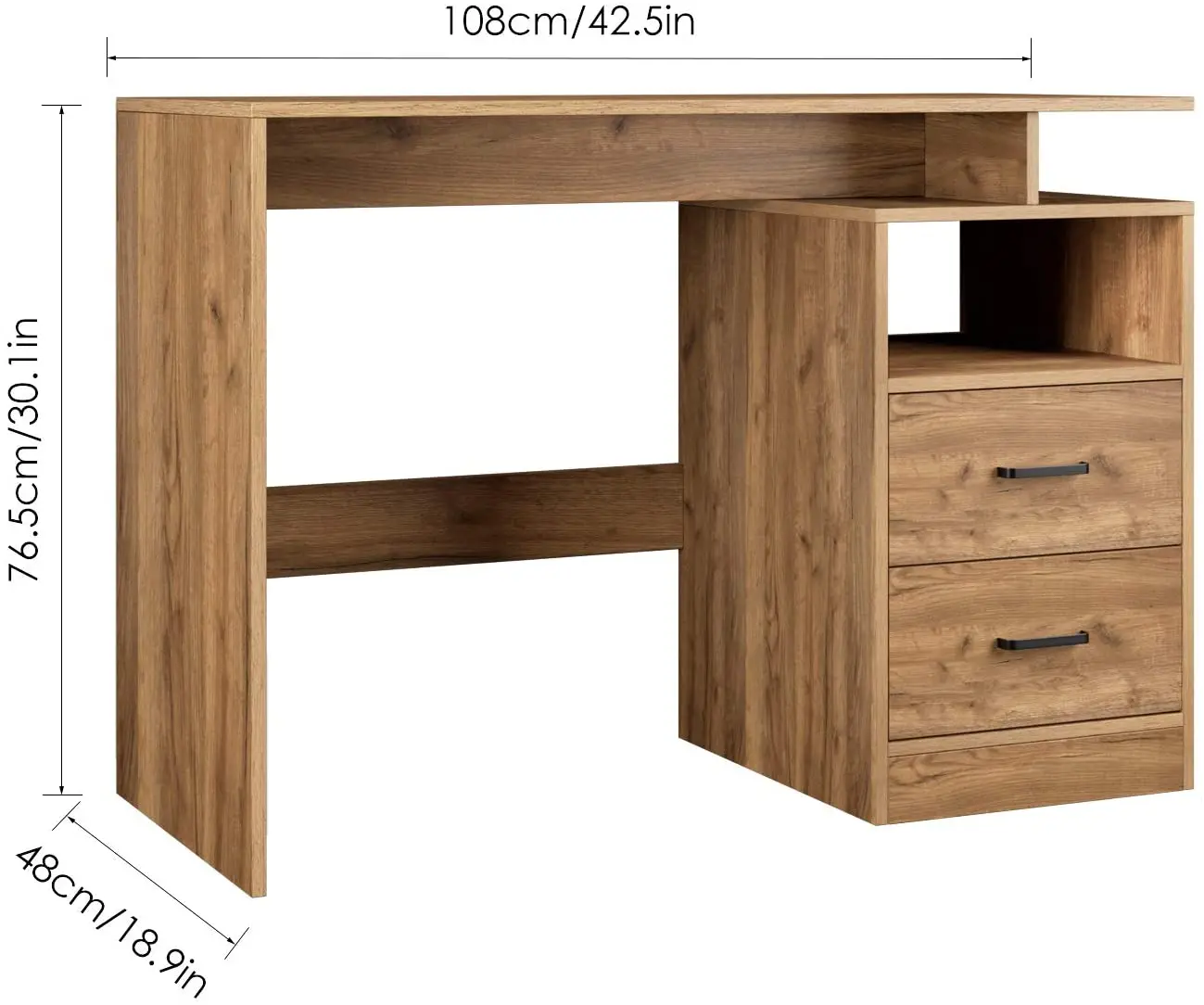 Computer Desk with 2 Drawers Large Home Office Desk PC Laptop Study Workstation Gaming Table Oak 108x48x76.5cm To enjoy a work