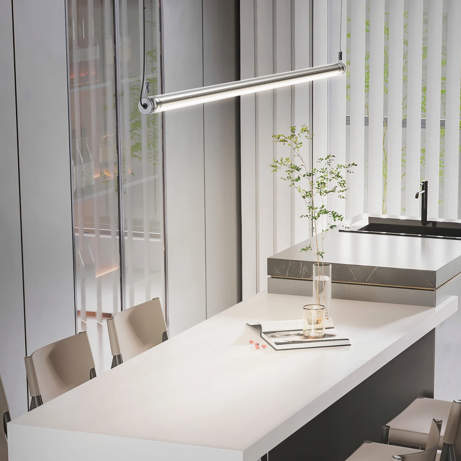 COOJUN LED Glass Pendant Light Clear Round Tube Island Lamp 0-10V/Triac CCT Change Dimming Home Office Conference Pendant Lights