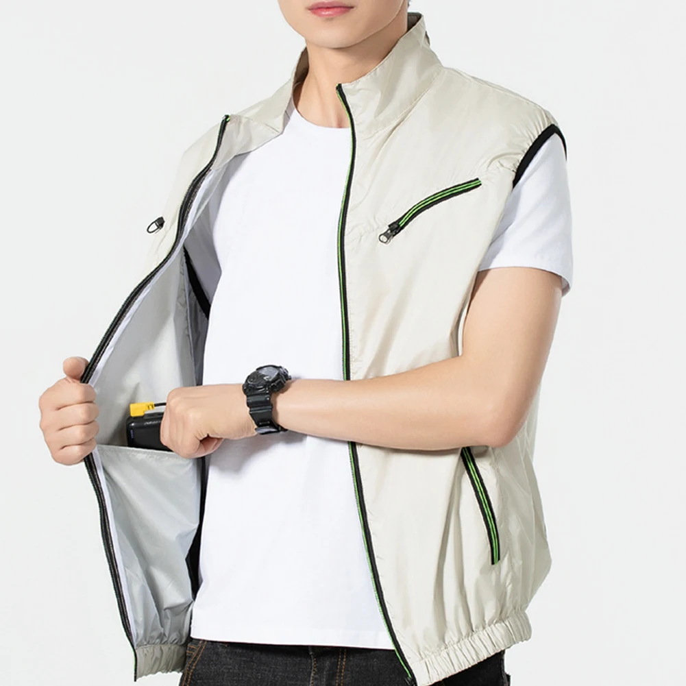 2.Breathable and Durable Fabric: Our ice fan vest features breathable and abrasion-resistant fabric that keeps you comfortable during long hours of work. The fabric's unique micro-pore technology allows for effective sweat evaporation and healthy heat dissipation. Enjoy a dry and fresh feeling on your skin, while the wrinkle-resistant feature ensures a neat and professional appearance.