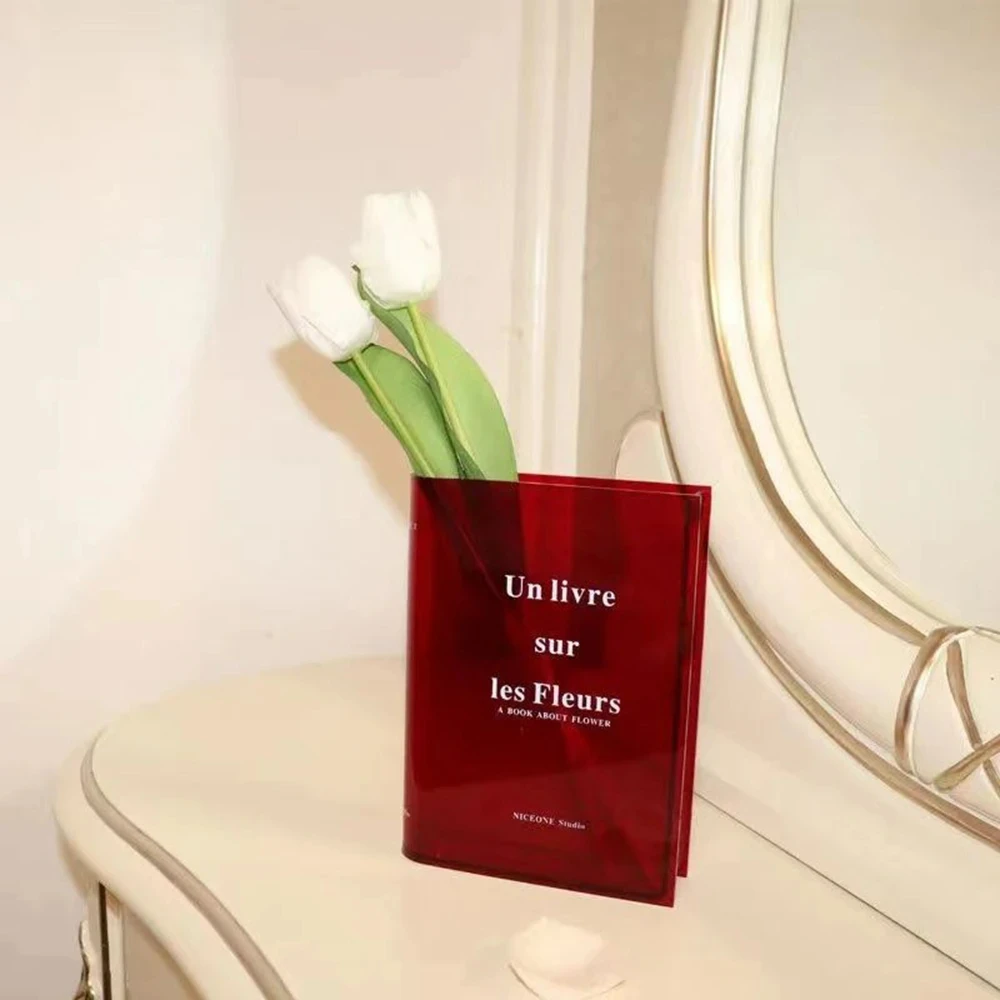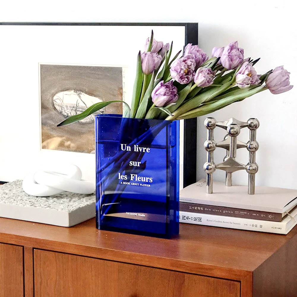 Creatitive Book Letter Acrylic Vase Artistic Transparent Flowers Vase Hydroponic Decorative Vase Desktop Bookshelf Ornament