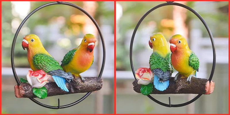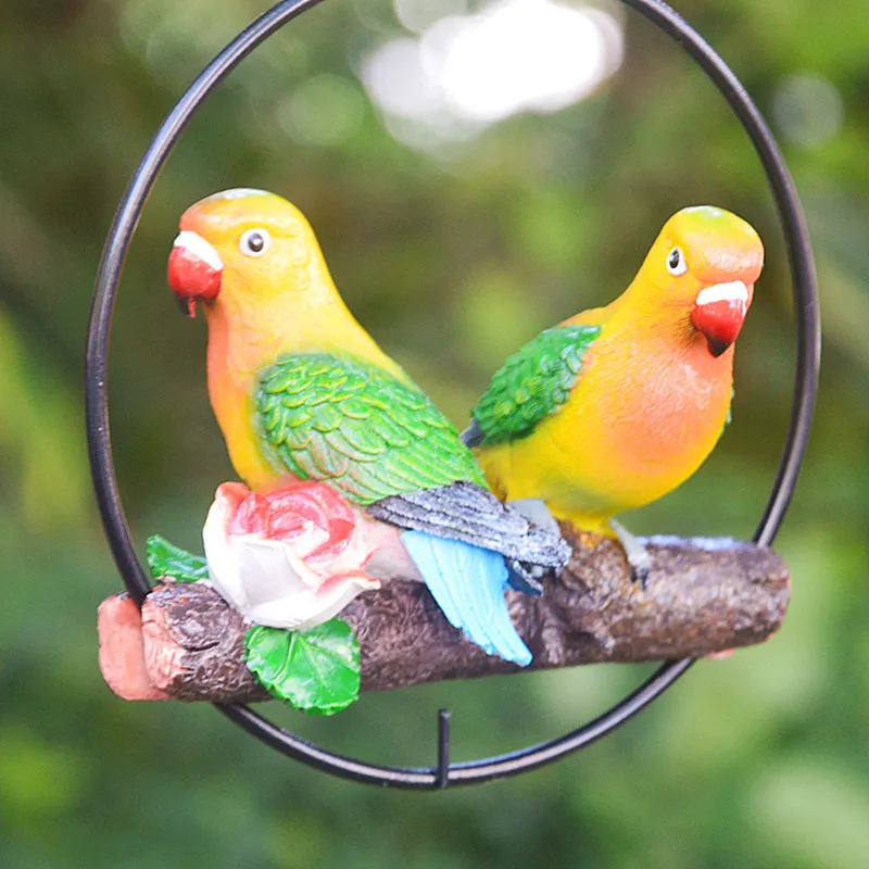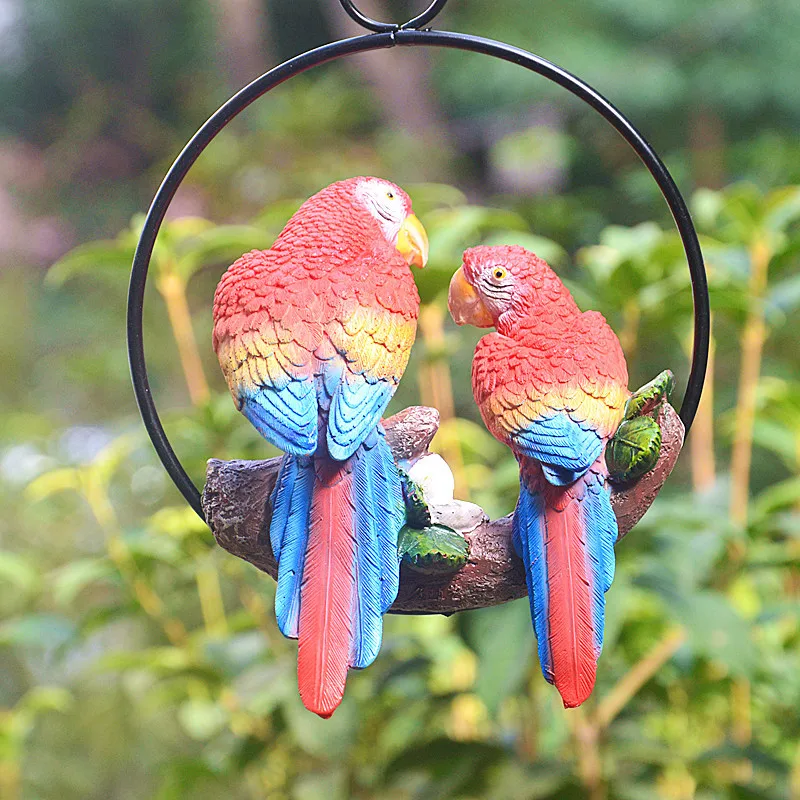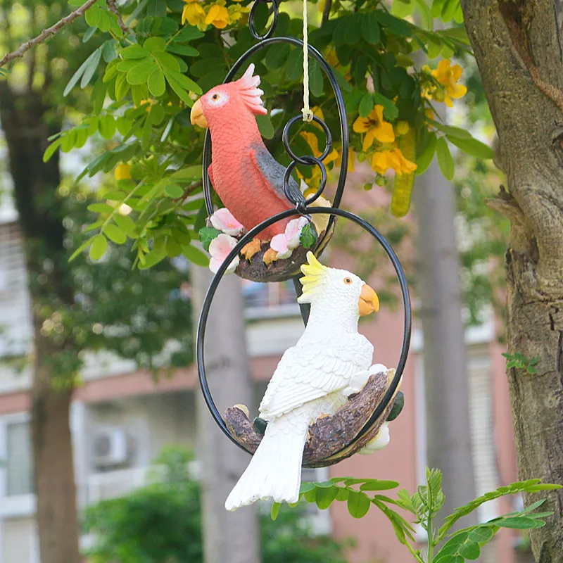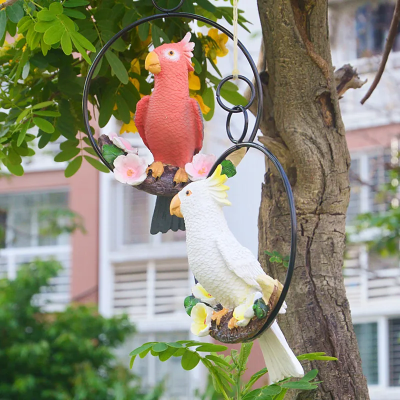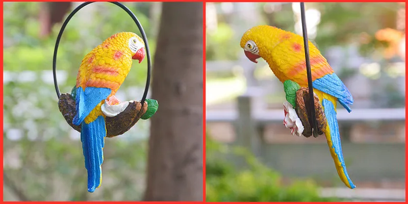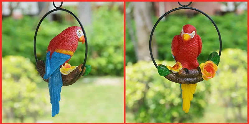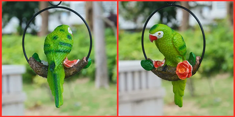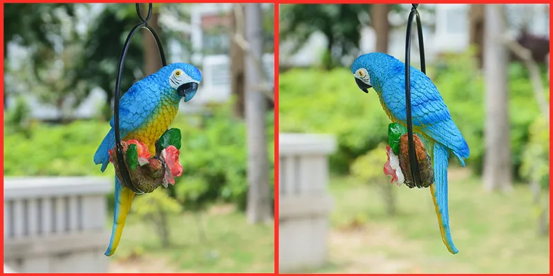 Creative Resin Parrot Hang On Tree Outdoor Garden Decoration Statue Animal Sculpture For Home Office Room Garden Decor Ornament