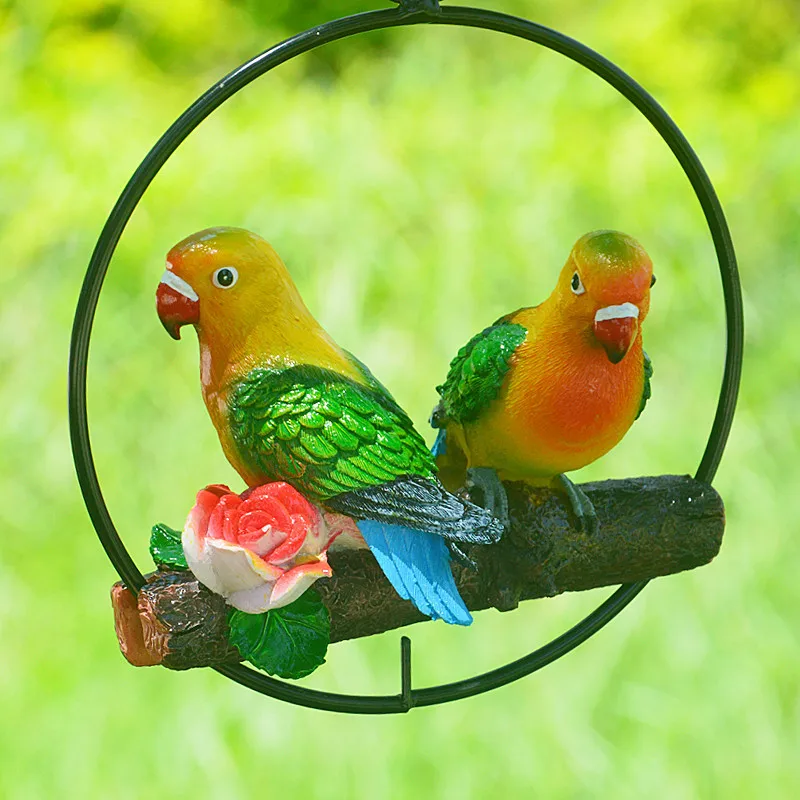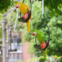 Creative Resin Parrot Hang On Tree Outdoor Garden Decoration Statue Animal Sculpture For Home Office Room Garden Decor Ornament