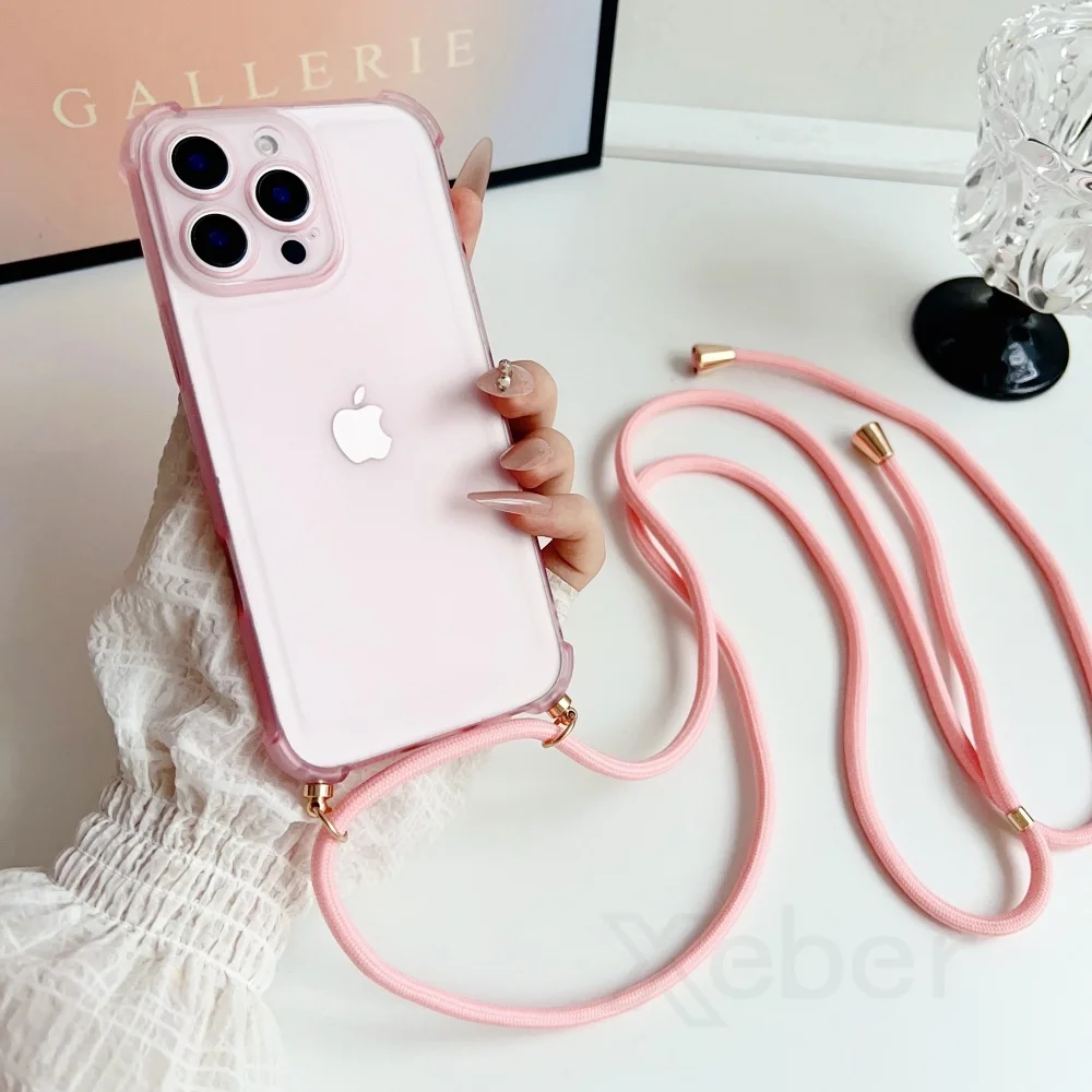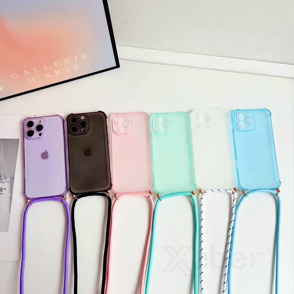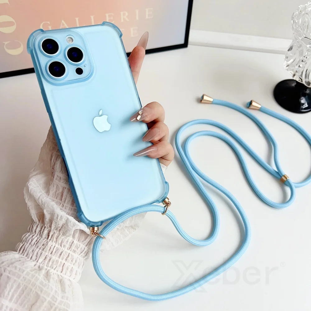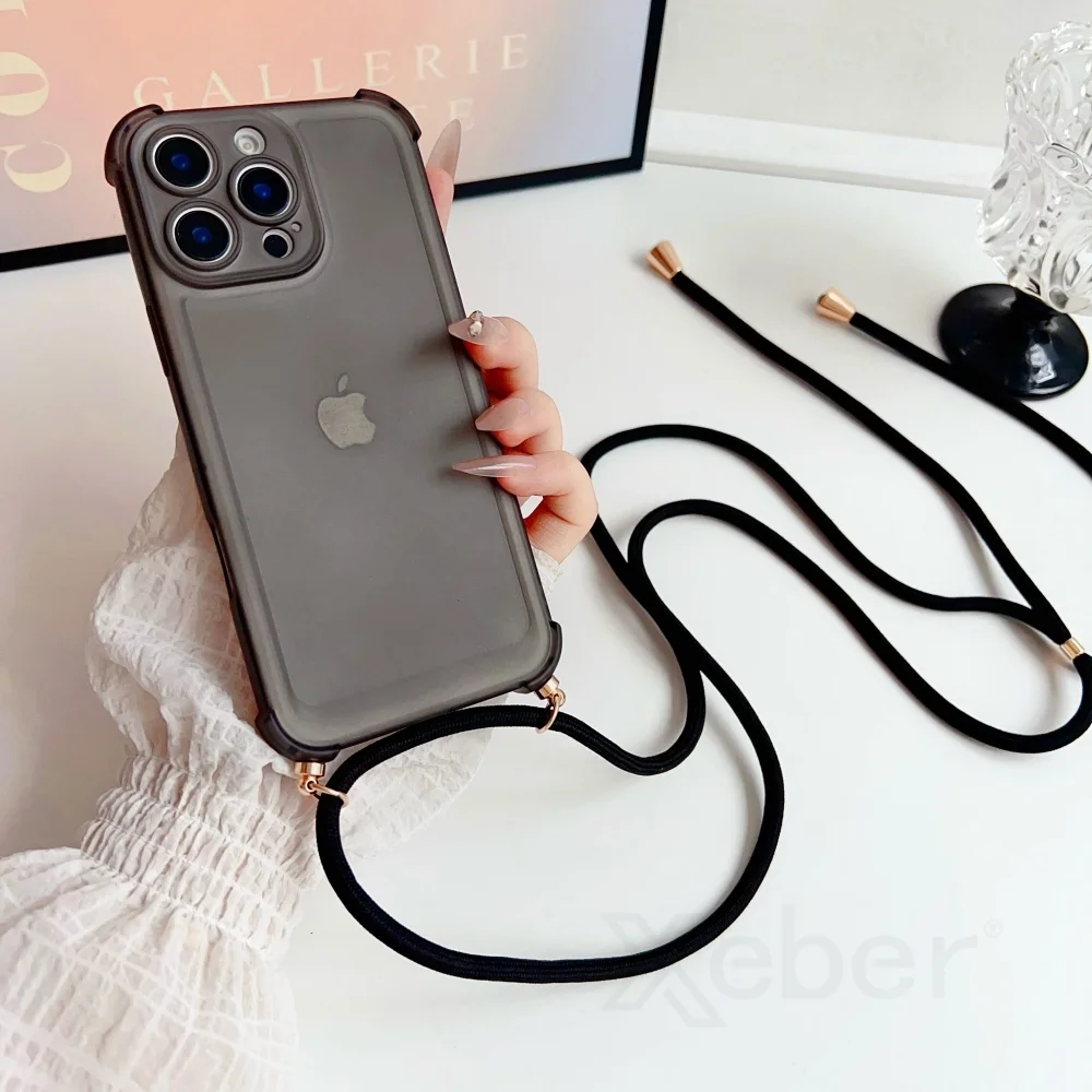 Crossbody Strap Lanyard Matte Shockproof Case For iPhone 17 16 Pro Max 15 14 13 Mini 12 11 XR XS X 7 8 Plus Clear Soft TPU Cover
