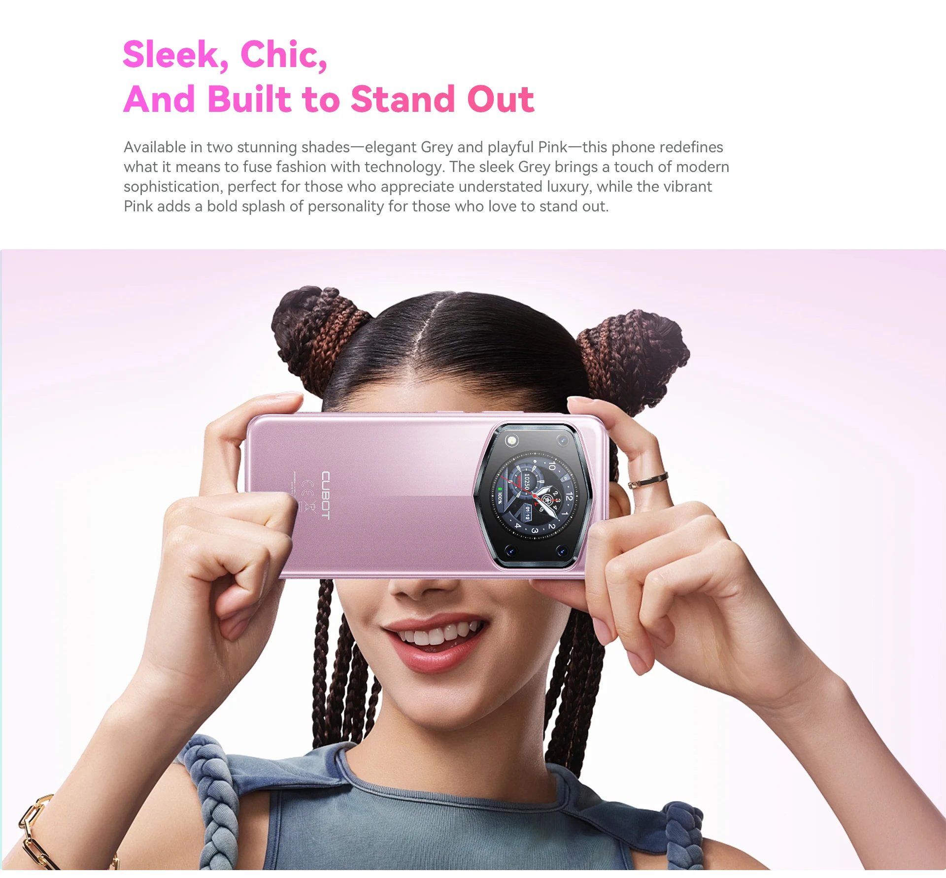 Available in two stunning shades—elegant Grey and playful Pink—this phone redefines what it means to fuse fashion with technology. The sleek Grey brings a touch of modern sophistication, perfect for those who appreciate understated luxury, while the vibrant Pink adds a bold splash of personality for those who love to stand out.