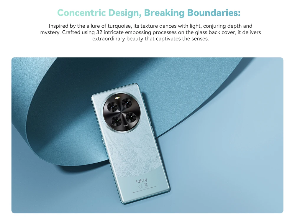 Inspired by the allure of turquoise, its texture dances with light, conjuring depth and mystery. Crafted using 32 intricate embossing processes on the glass back cover, it delivers extraordinary beauty that captivates the senses.