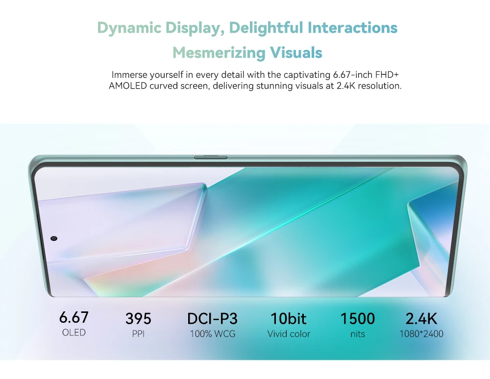 Immerse yourself in every detail with the captivating 6.67-inch FHD+ AMOLED curved screen, delivering stunning visuals at 2.4K resolution.