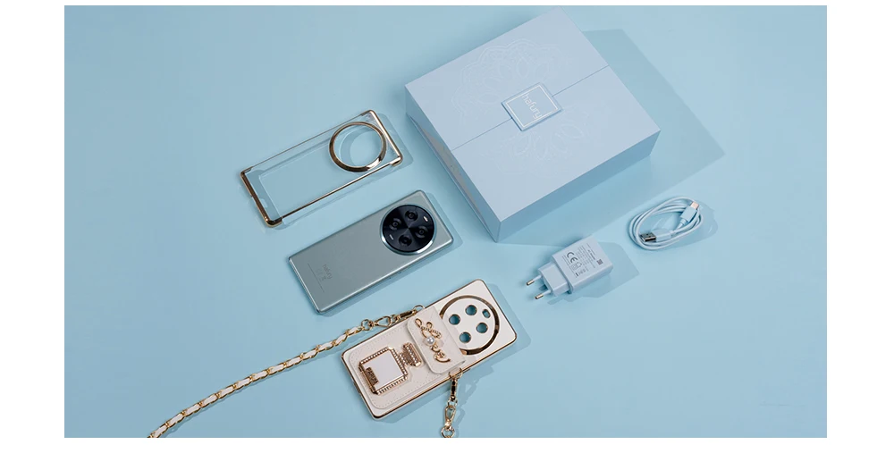 Unveil your device in style with our captivating packaging aesthetics. Designed in a captivating baby blue hue, the box promises an unforgettable unboxing journey. Discover the exquisite detail of the pearl adorning the accompanying phone case, a touch of elegance that speaks volumes.