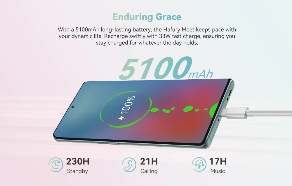 With a 5100mAh long-lasting battery and 33W fast charge, the Hafury Meet keeps pace with your dynamic life, ensuring you stay charged for whatever the day holds, providing enduring grace and reliability.