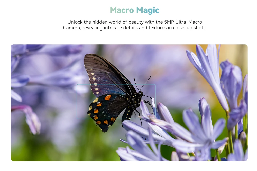 Unlock the hidden world of beauty with the 5MP Ultra-Macro Camera, revealing intricate details and textures in close-up shots.