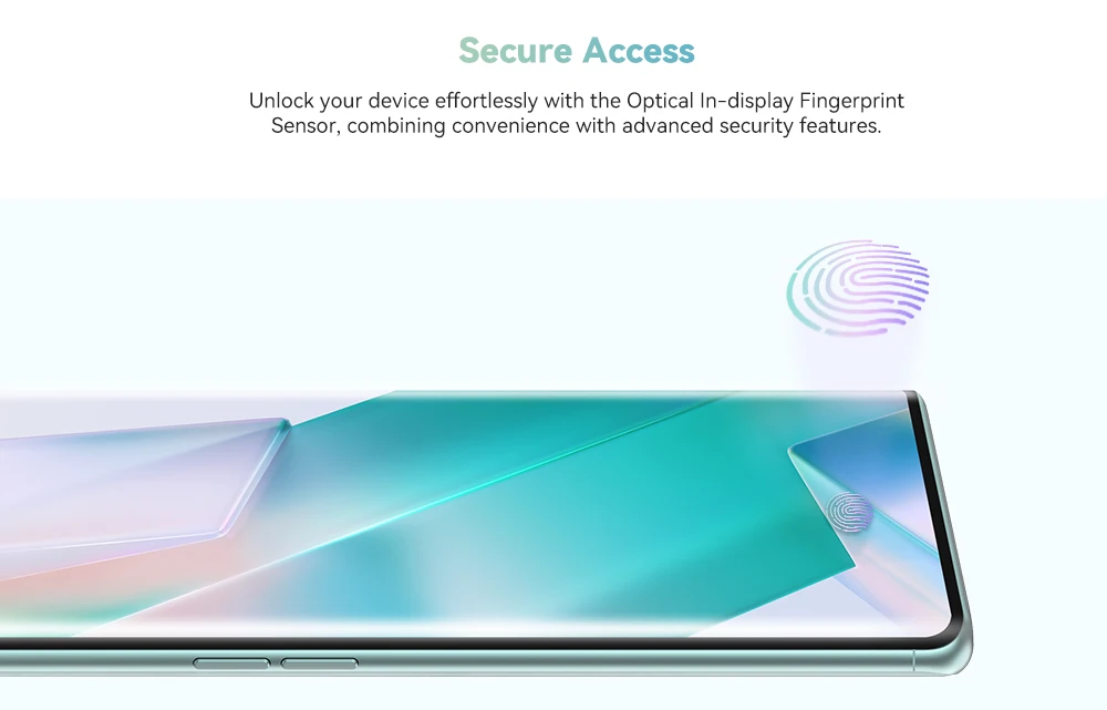 Unlock your device effortlessly with the Optical In-display Fingerprint Sensor, combining convenience with advanced security features.