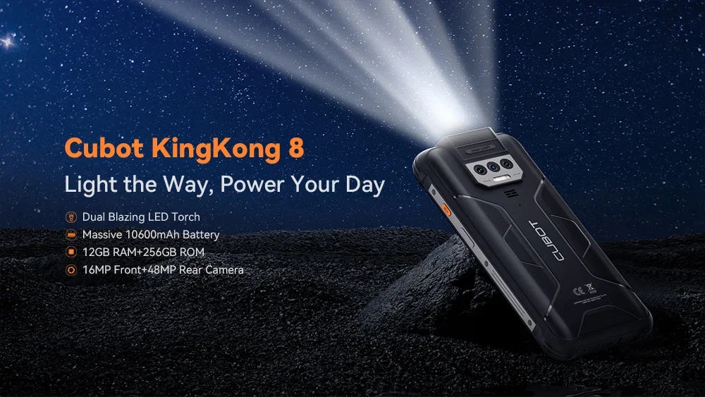 Cubot KingKong 8 Rugged 4G Smartphone Octa Core 6GB+256GB 6.528Inch FHD Android 13 Mobile Phone 10600mAh Battery 48MP Camera NFC