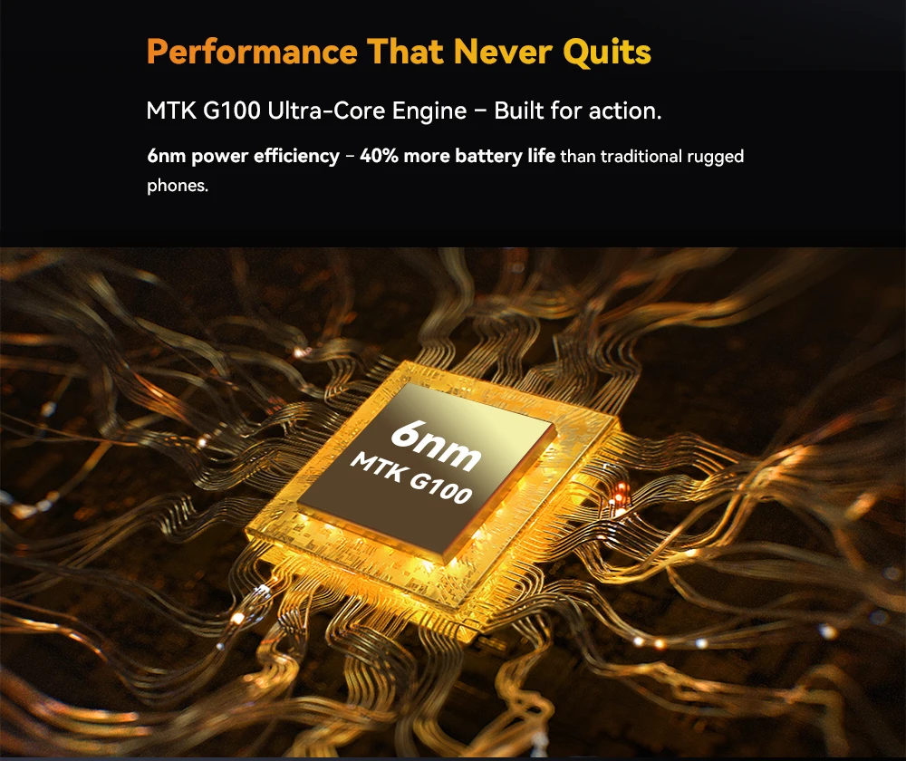 6nm power efficiency– 40% more battery life than traditional rugged phones.