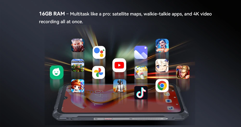 16GB RAM– Multitask like a pro: satellite maps, walkie-talkie apps, and 4K video recording all at once.