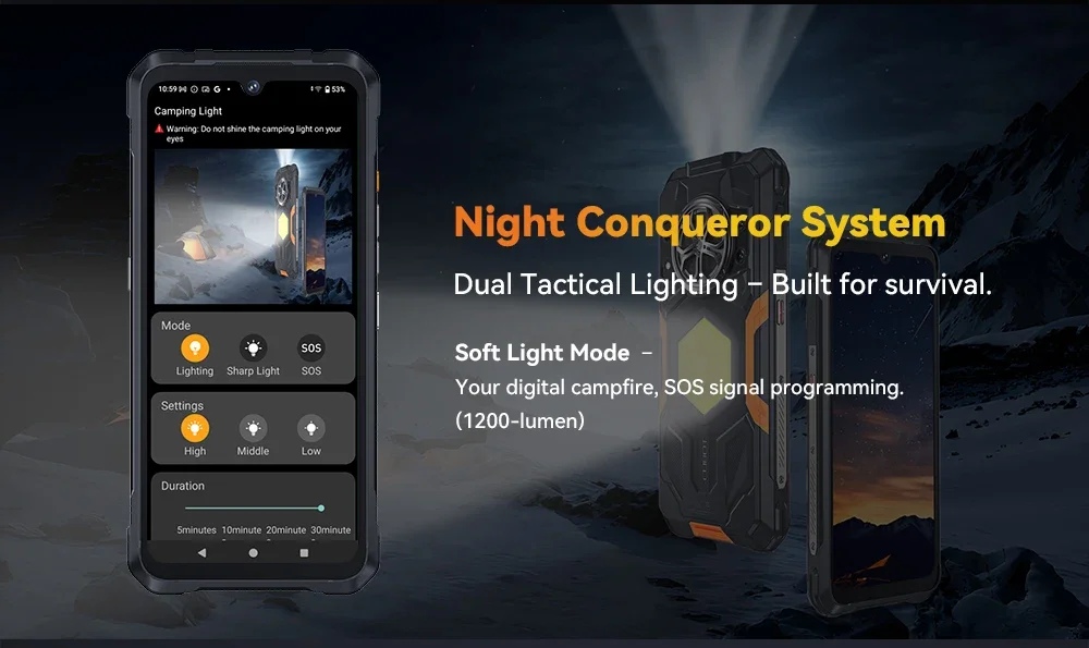 Soft Light Mode– Your digital campfire, SOS signal programming.(1200-lumen)