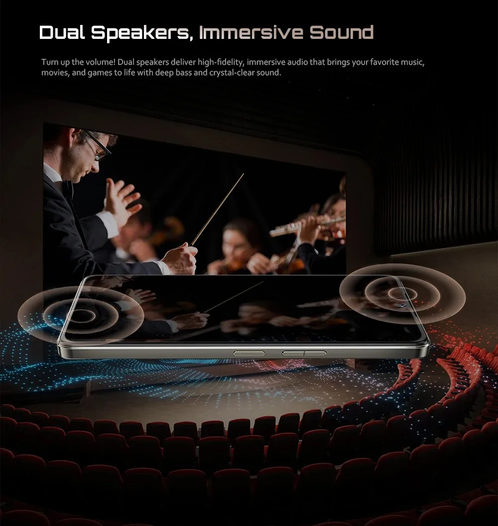 Turn up the volume! Dual speakers deliver high-fidelity, immersive audio that brings your favorite music, movies, and games to life with deep bass and crystal-clear sound.