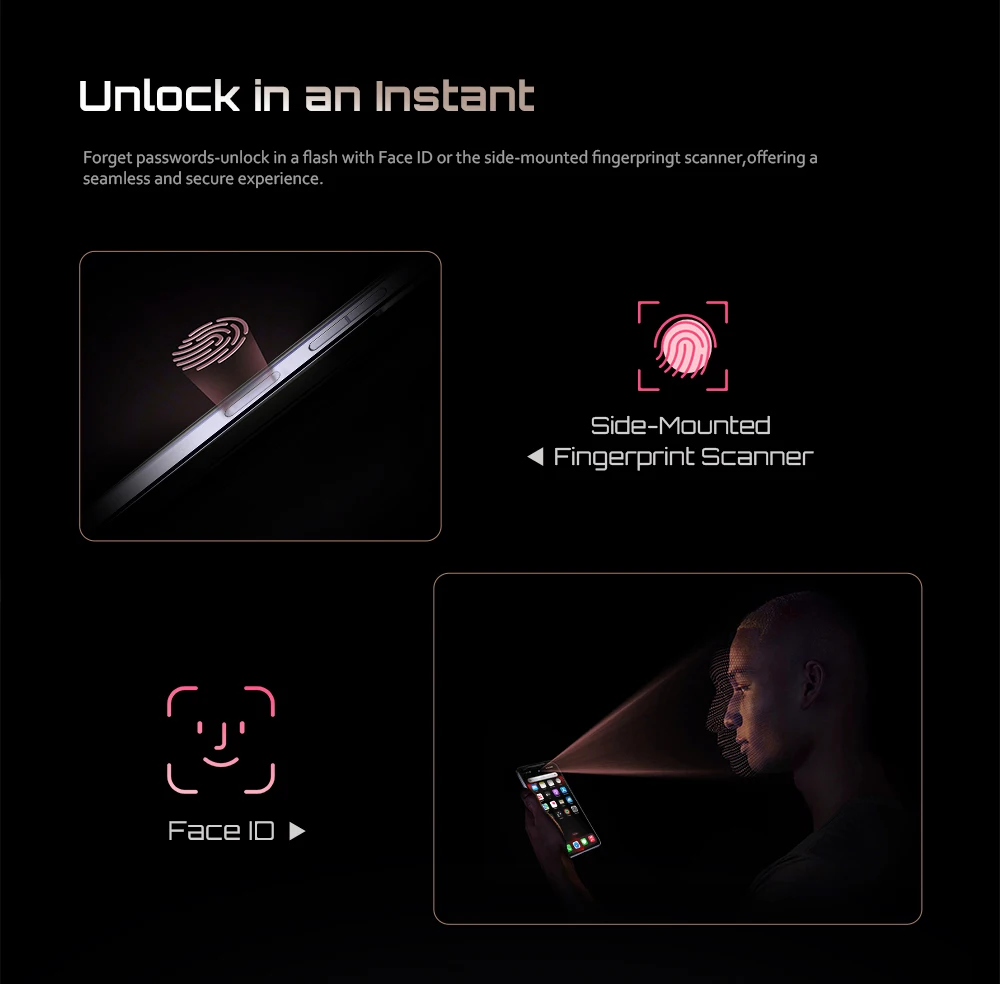 Forget passwords—unlock in a flash with Face ID or the side-mounted fingerprint scanner, offering a seamless and secure experience.