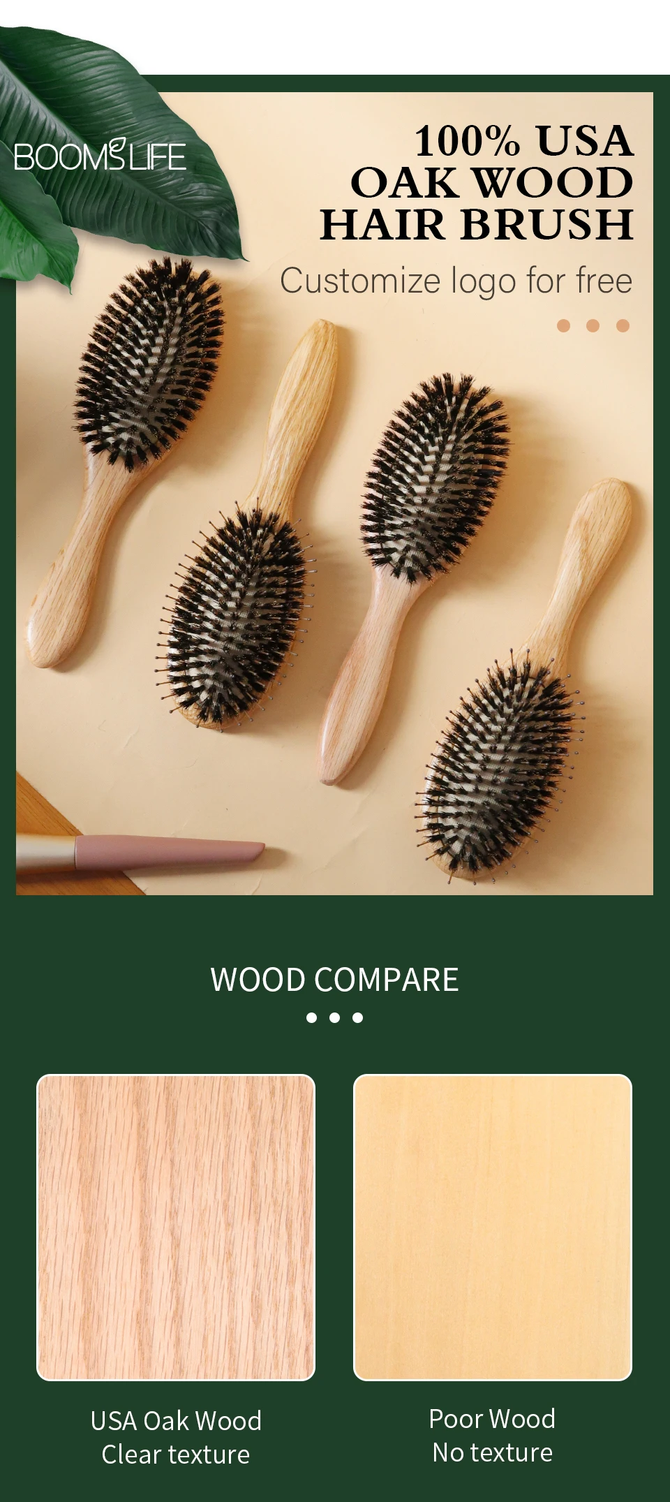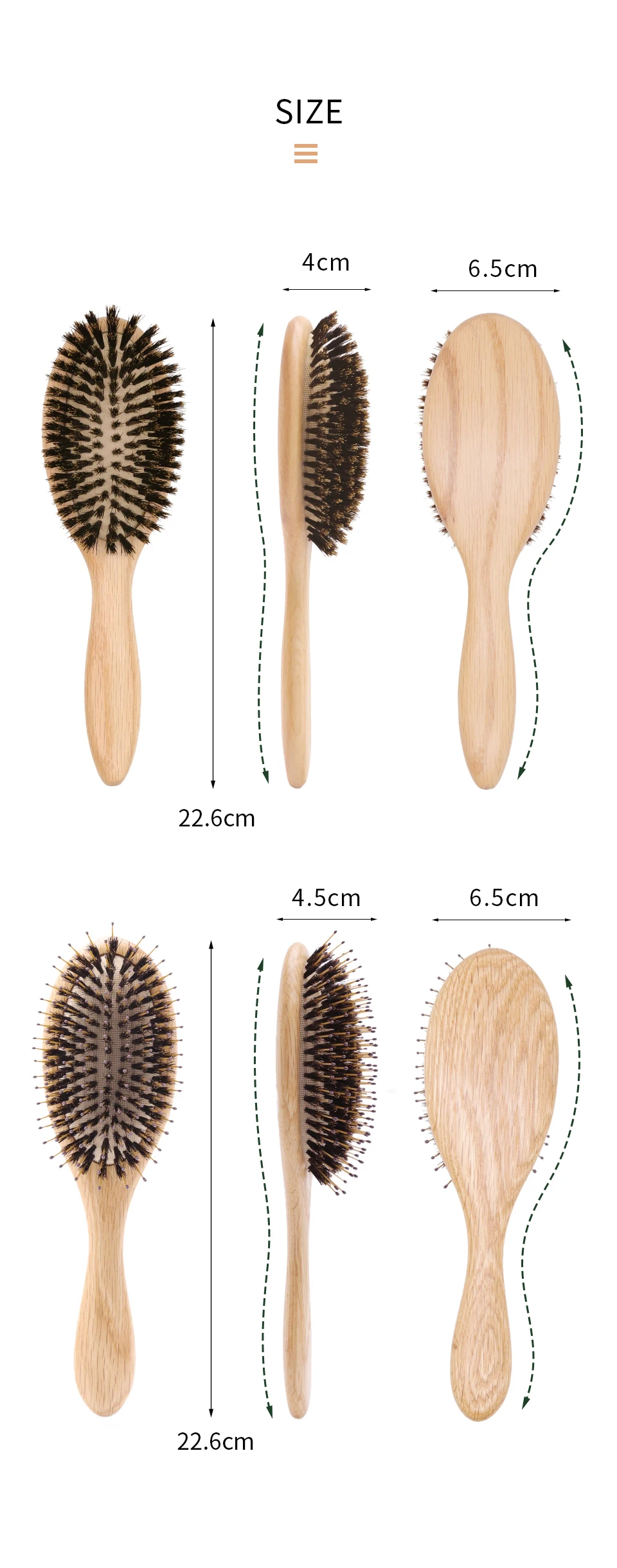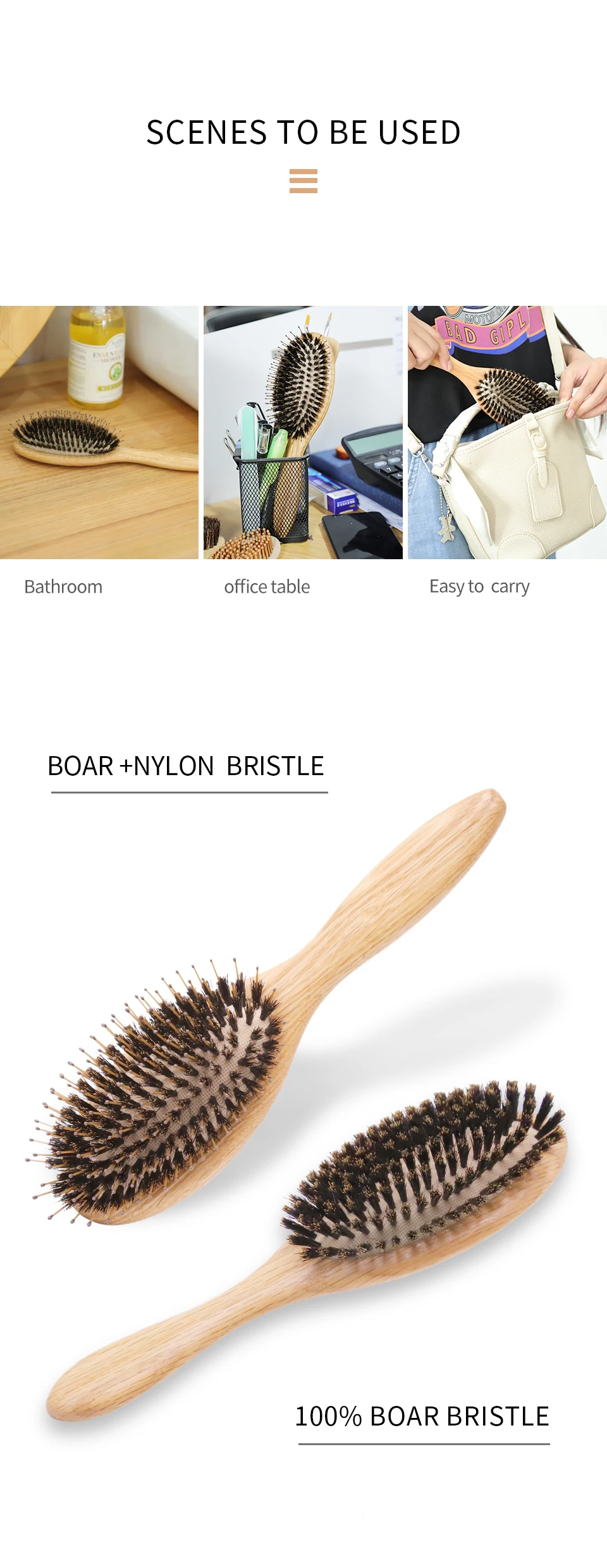 - Material: Natural boar bristle / Nylon / Wood/Bamboo