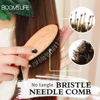 Custom Name Soft Boar Bristle Hair Brush Women Detangling Hairbrush Oak Wood Massage Comb for Wet and Dry Hair Barber Combs