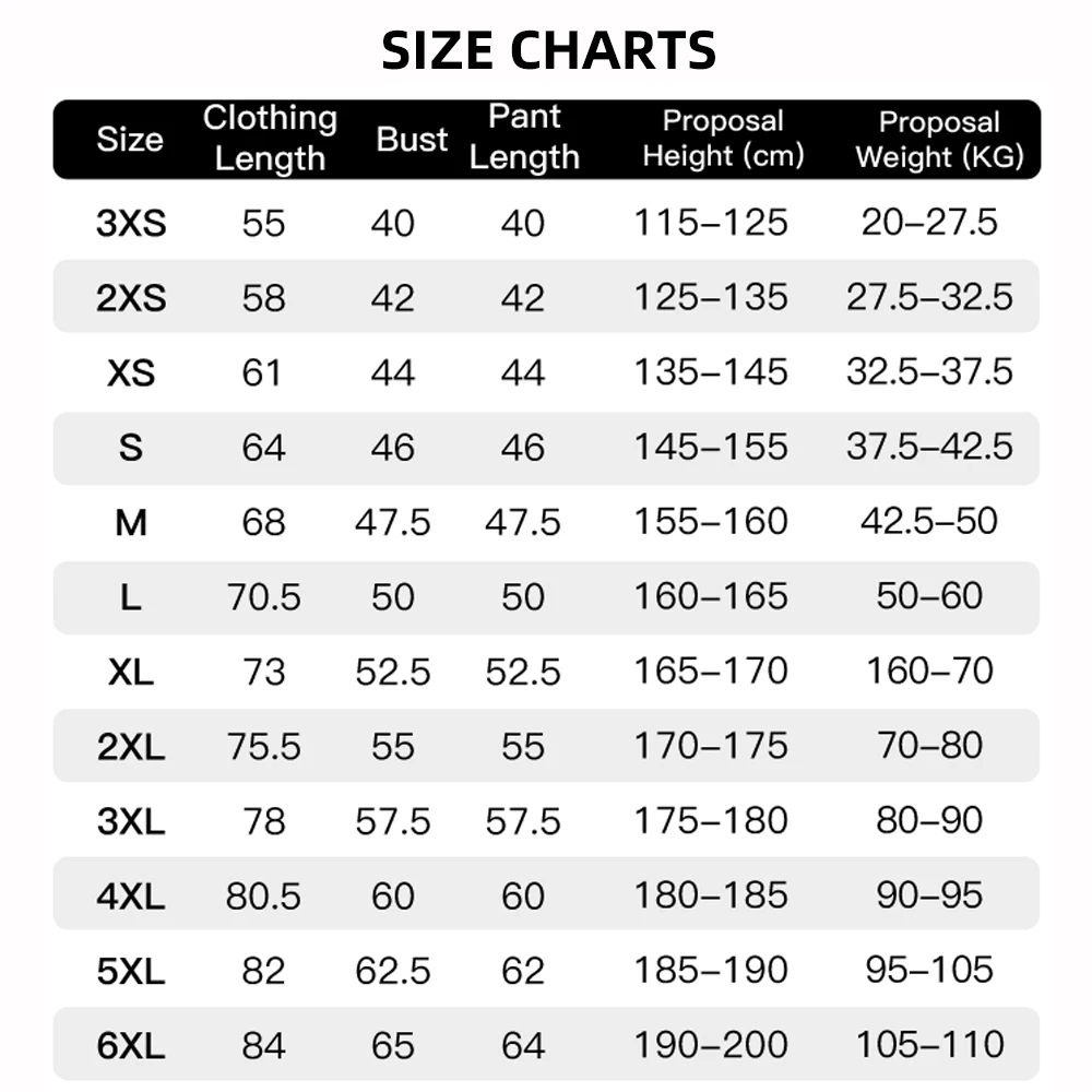 Size 3XS: suitable for kids height 115-125cm, weight 20-27.5kg;