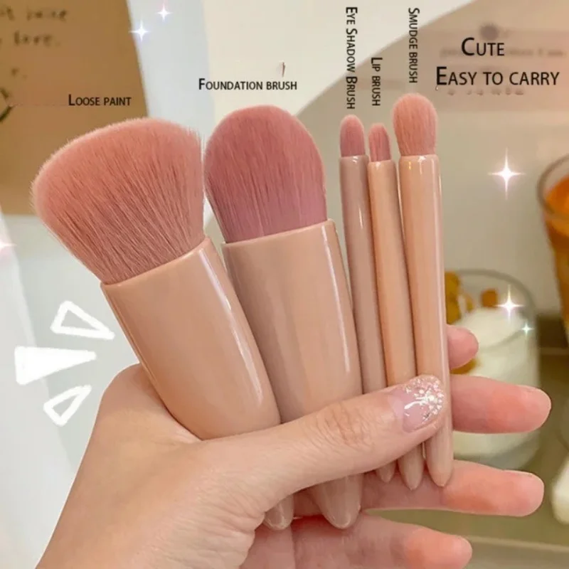 Cute Portable Makeup Mirror 5 Makeup Brushes Magnifying Glass Foldable Box Multiple Brush Types To Meet Different Makeup Looks