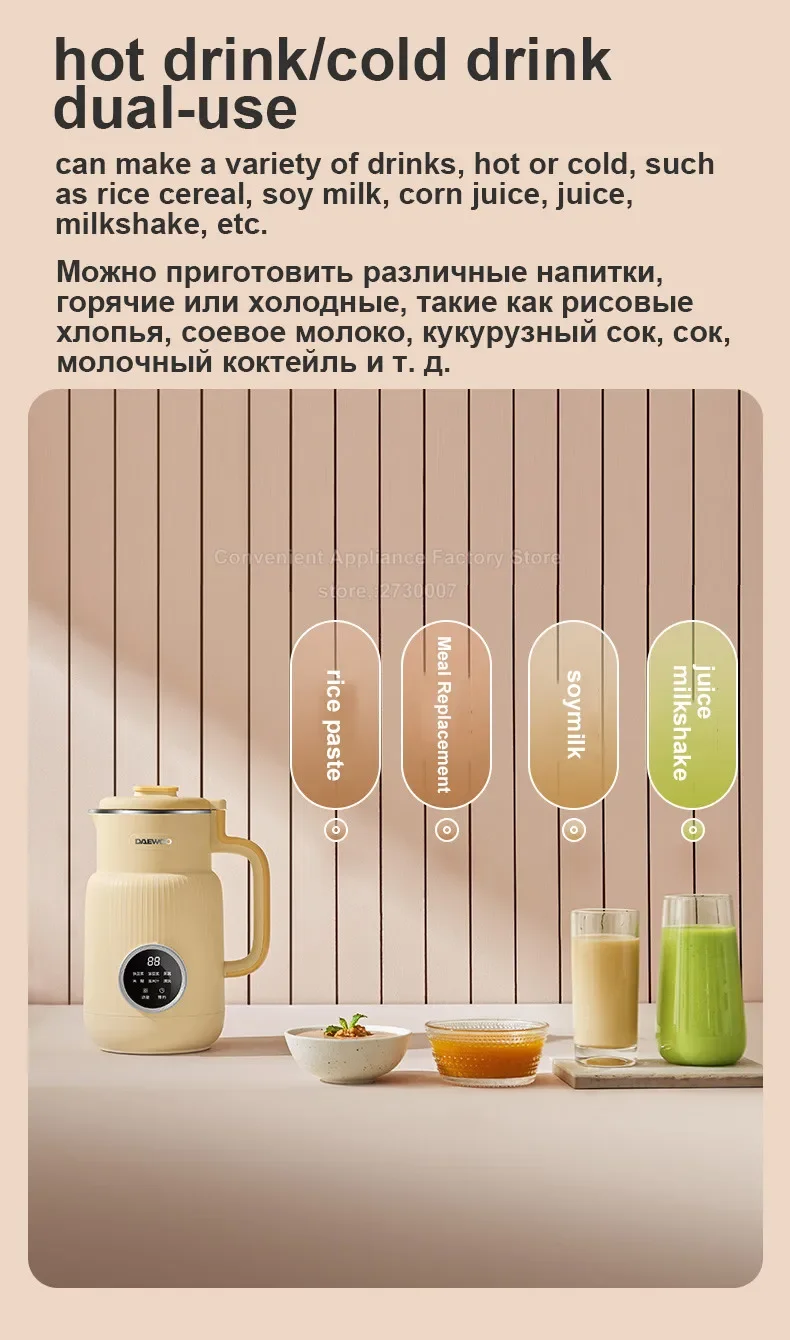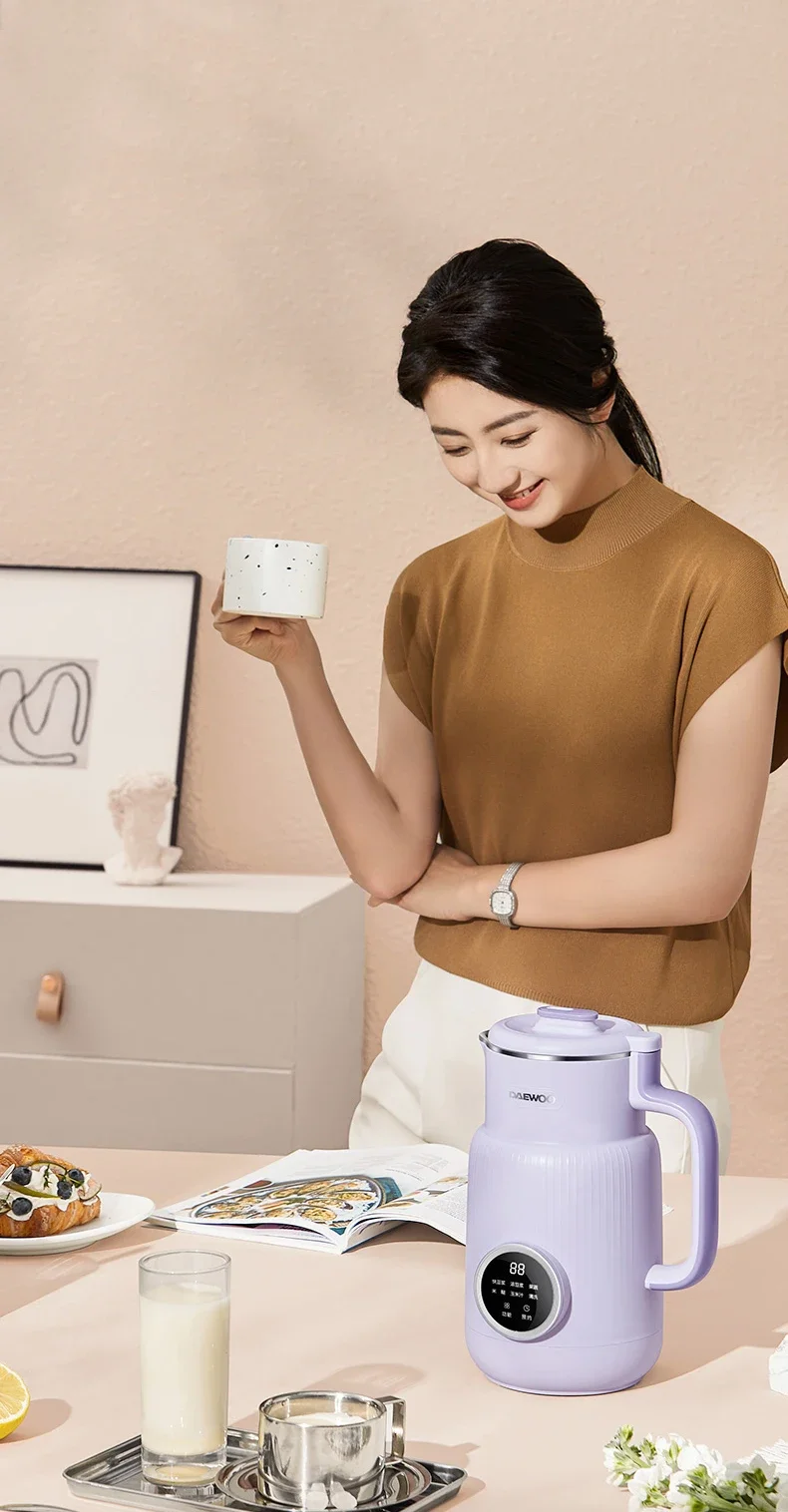 DAEWOO Mini Soymilk Maker 600ML Stainless Steel Food Blender Household Wall-breaking Mixer 12H Reservation 600ml