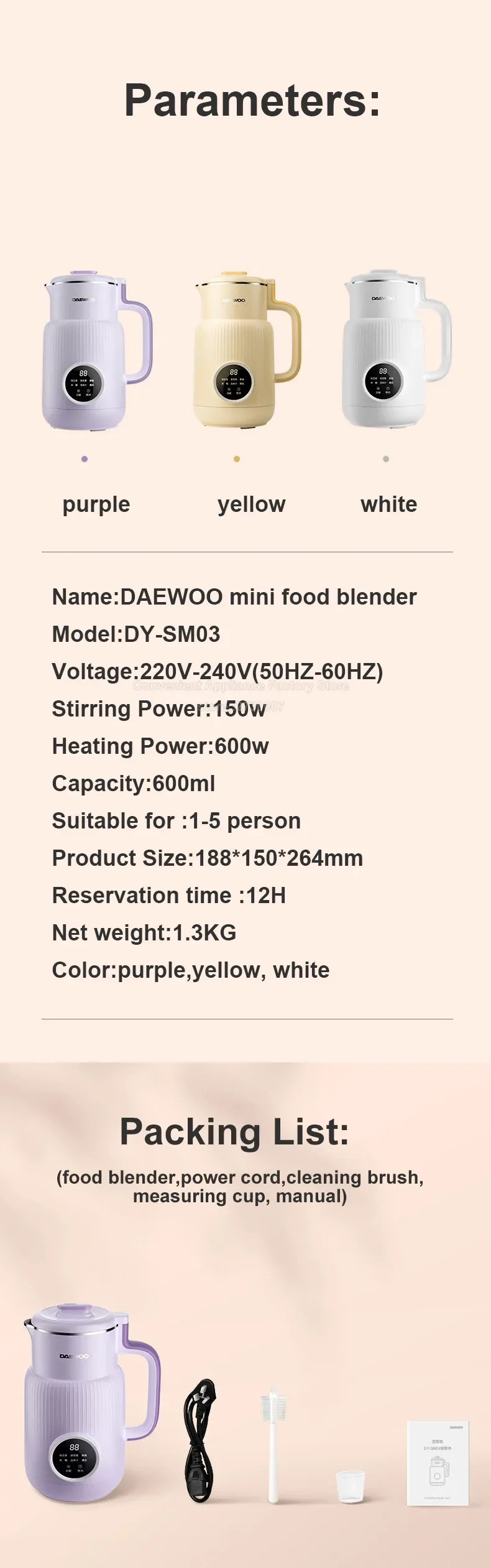 - Model Number: DY-SM03 Food Blender