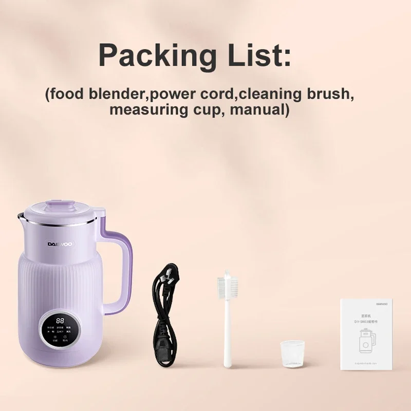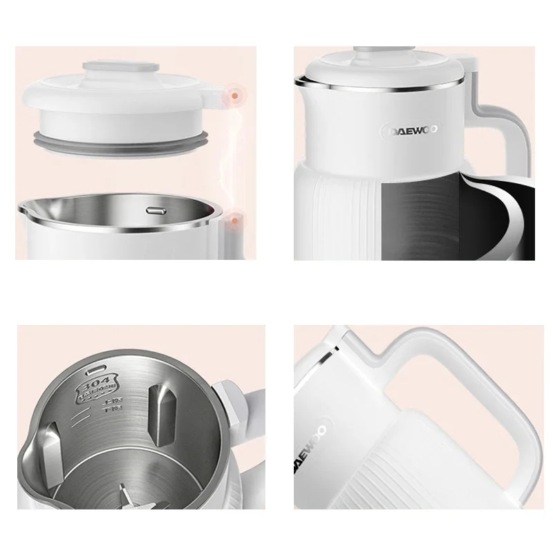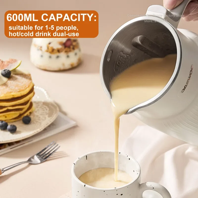 DAEWOO Mini Soymilk Maker 600ML Stainless Steel Food Blender Household Wall-breaking Mixer 12H Reservation 600ml