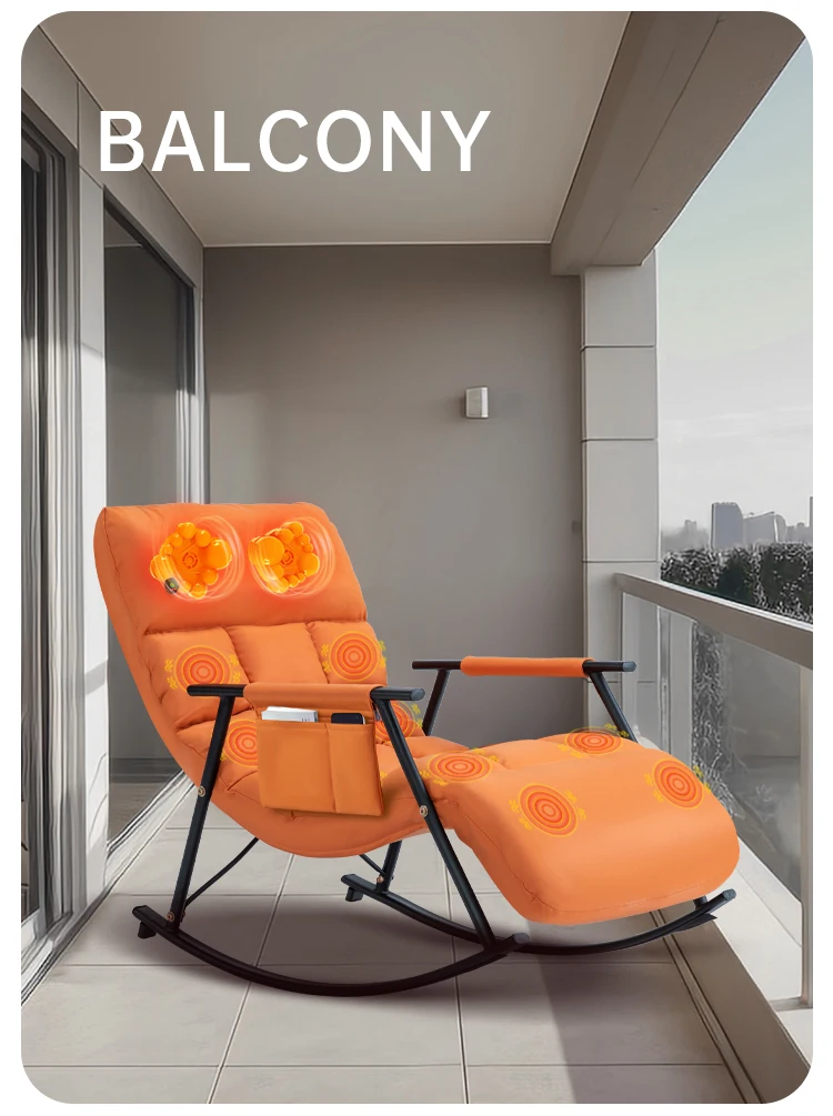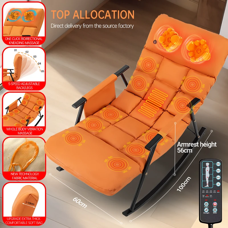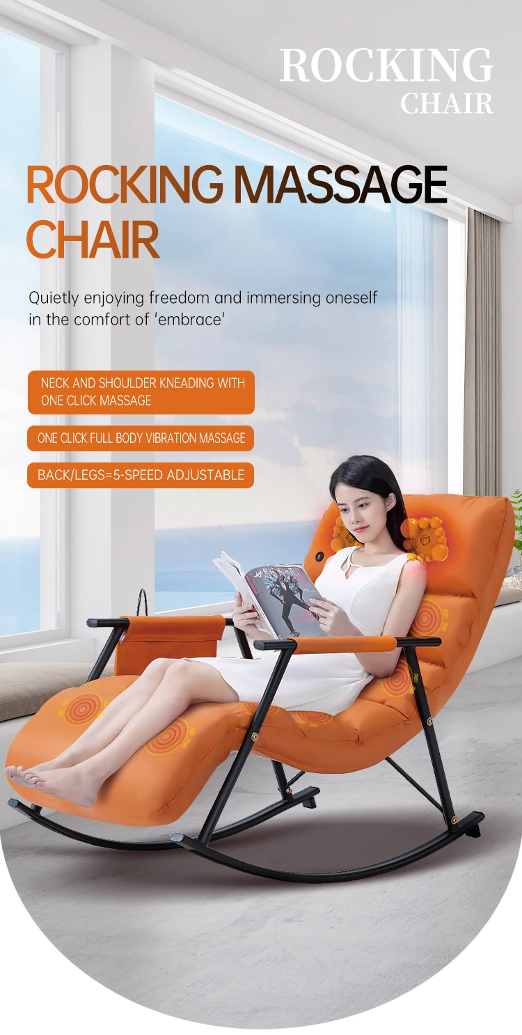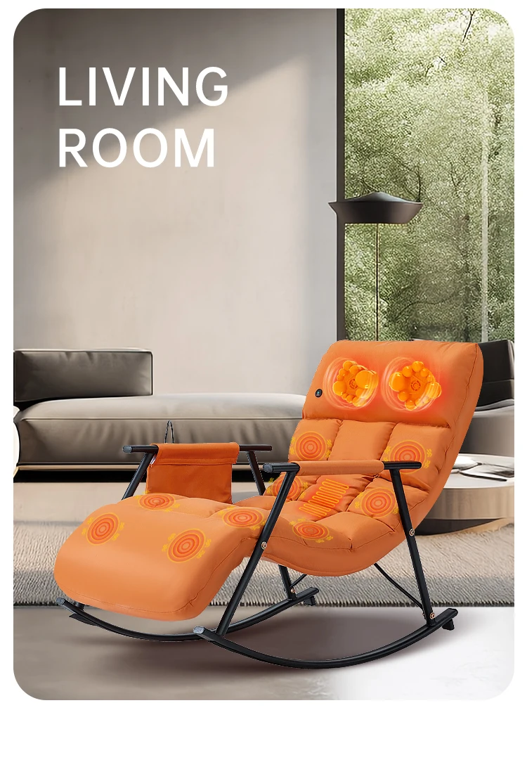 Upholstered Recliner Shoulder Neck Kneading Massage Full Body Vibrate Swaying Rocking Chair