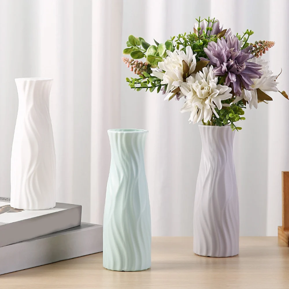 Decorative Vase Living Room Plastic Dry Flower Bottle Flower Vases Printed Circular Modern Home Decoration Floreros Room Decor
