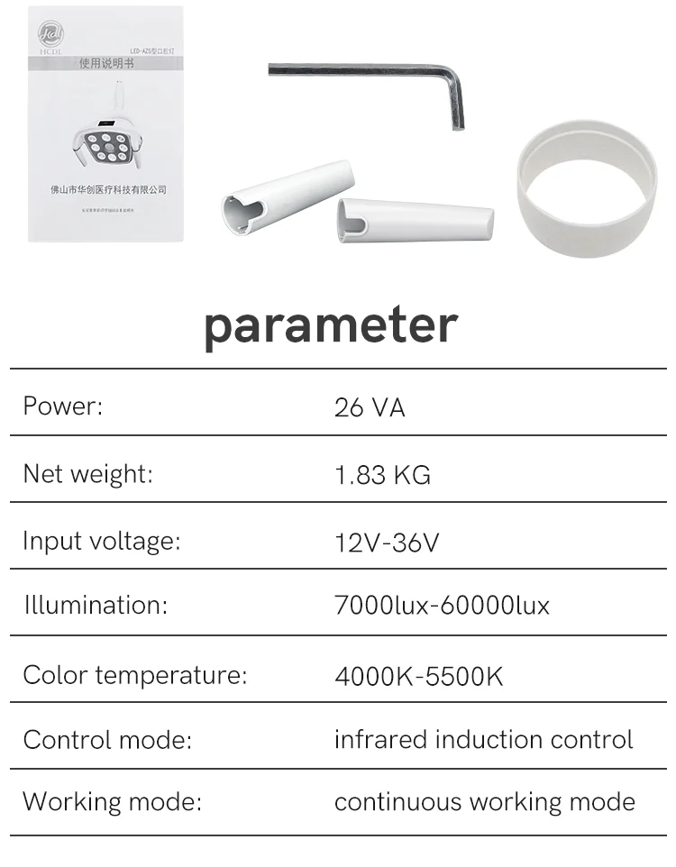 3. When the dental lamp is turned on, the hand stops within the effective range of the infrared sensor area, and the illuminance is automatically adjusted