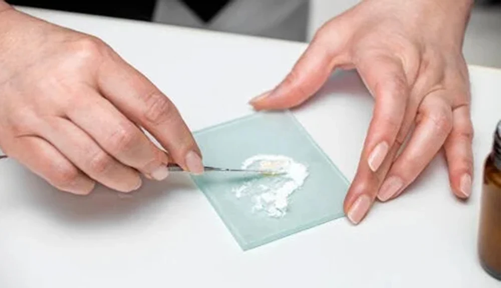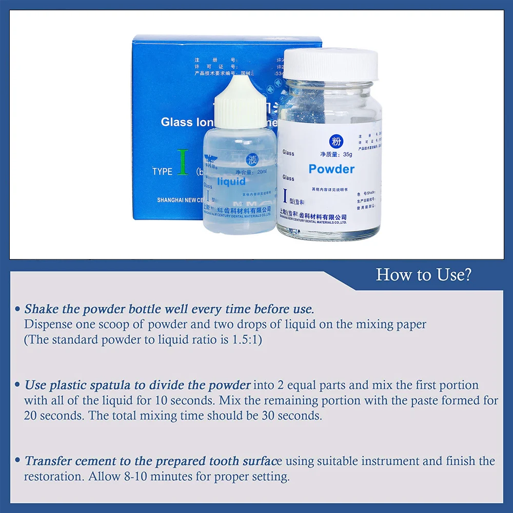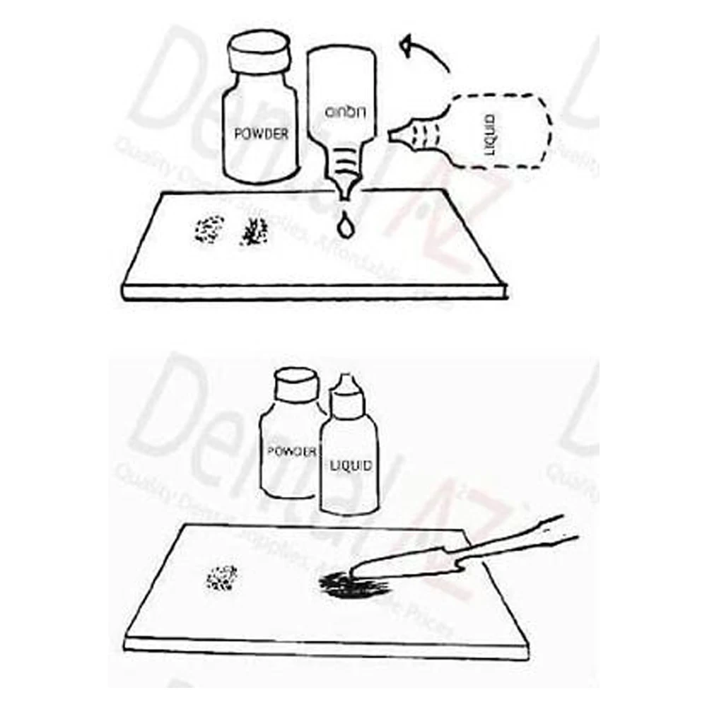 1.Shake the powder bottle well every time before use. Dispense one scoop of powder and two drops of liquid on the mixing paper(The standard powder to liquid ratio is 1.5:1).