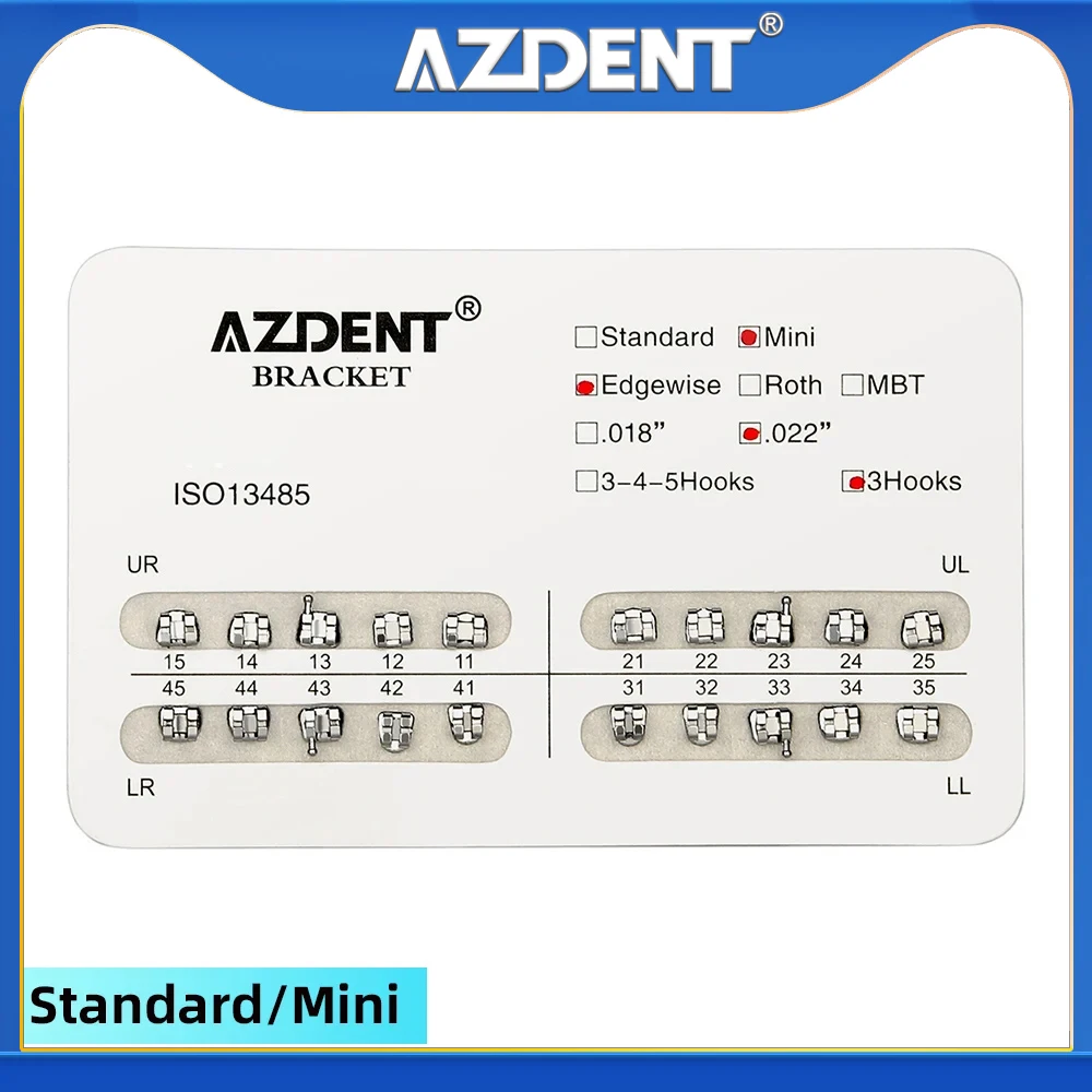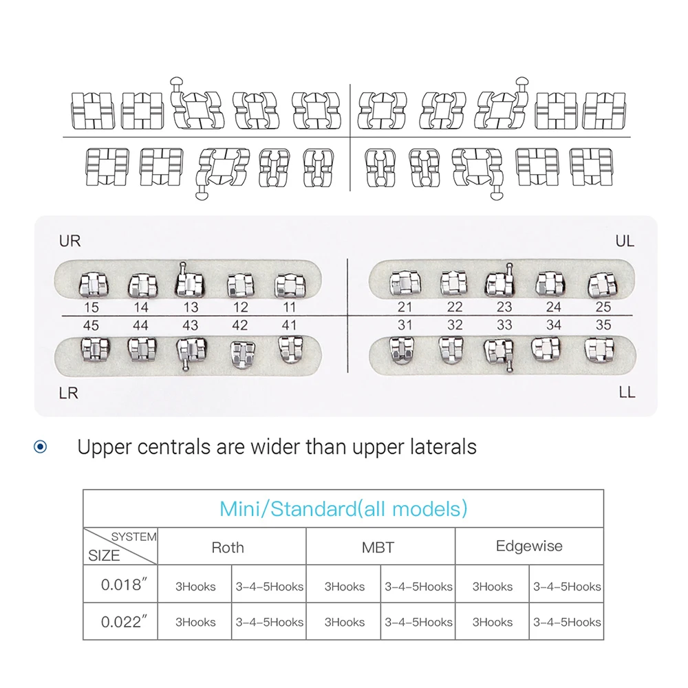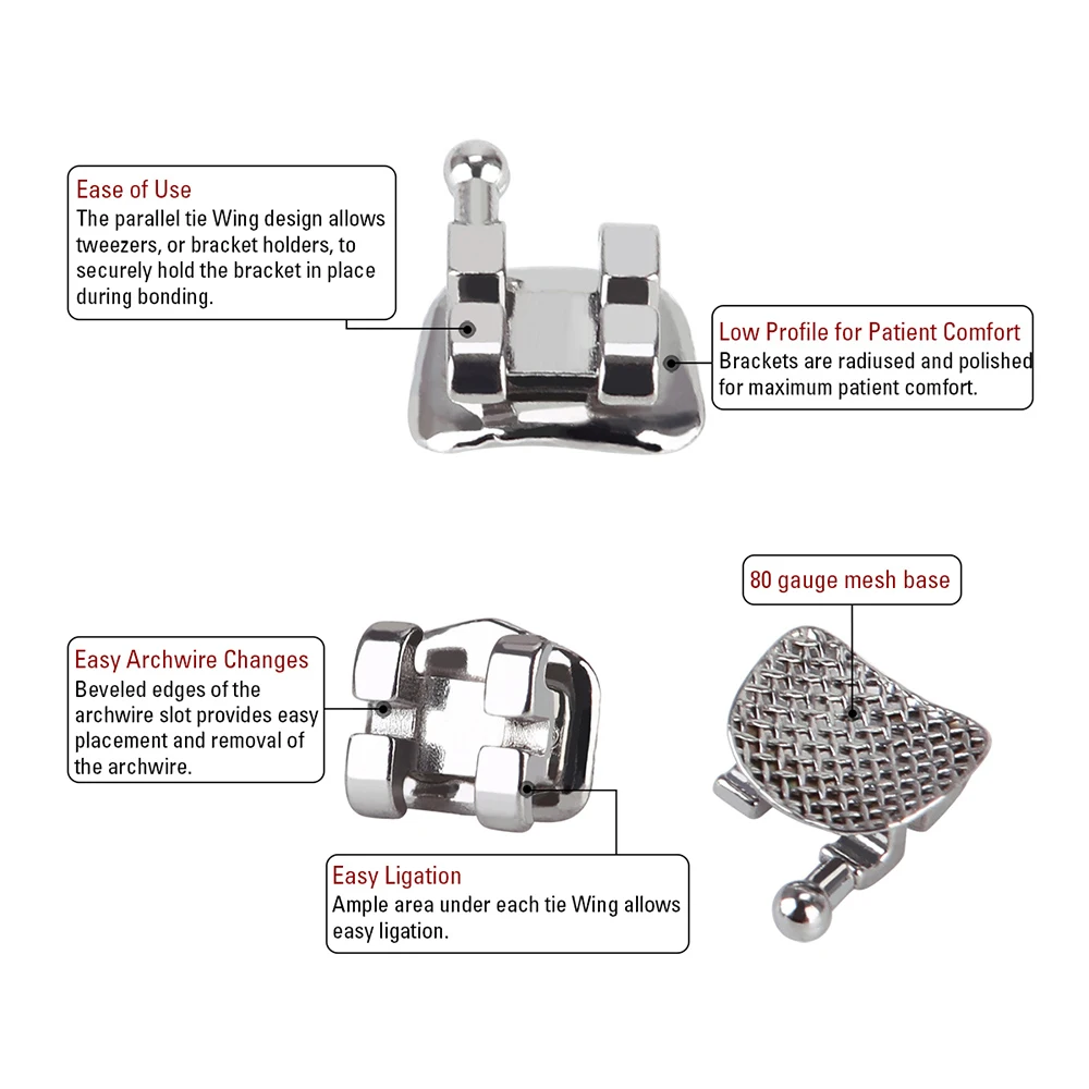 Dental Orthodontic Mesh Base Brackets Brace Standard/Mini Roth/MBT 0.022″/0.018″ with 3/3-4-5 Hooks