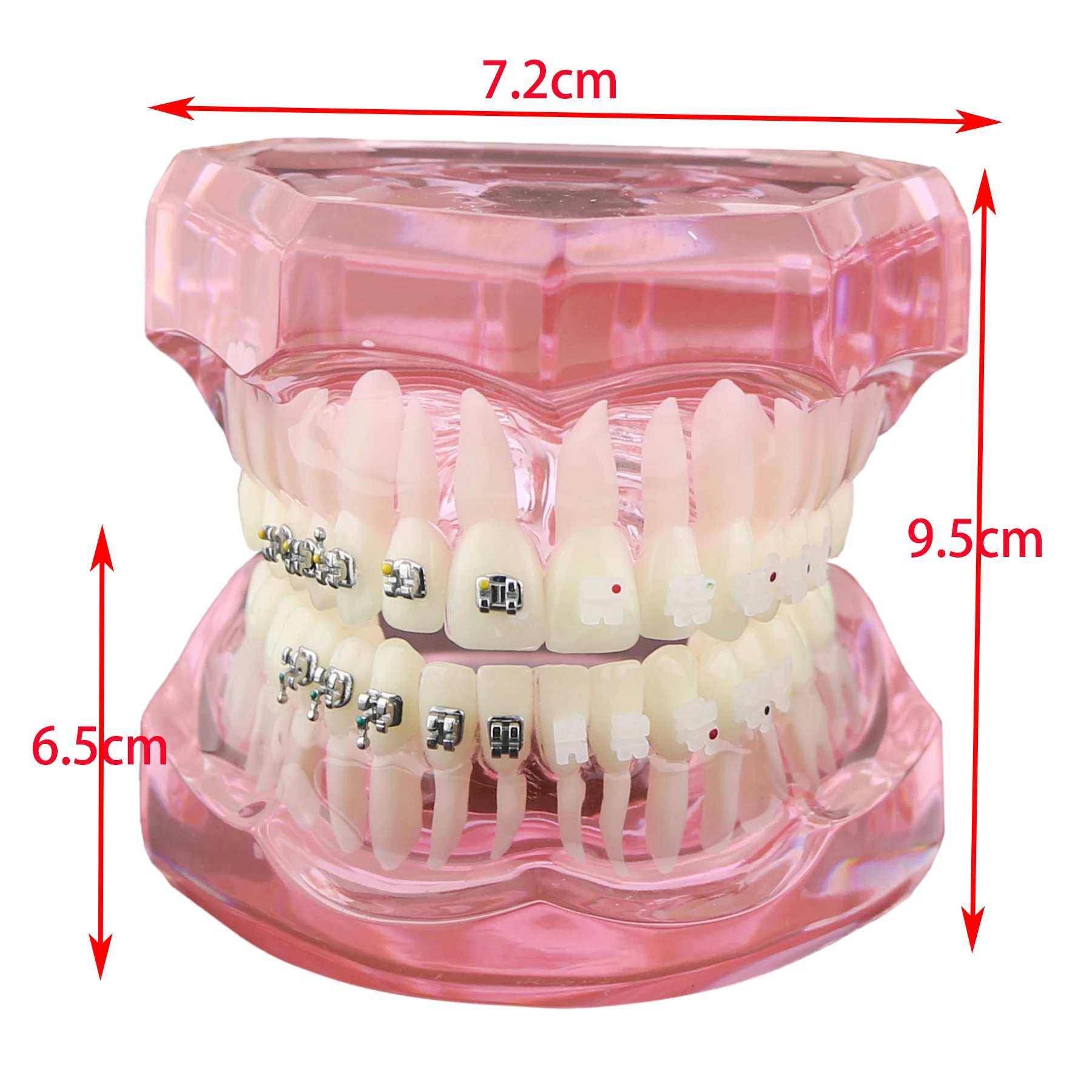 Dental Orthodontic Teeth Model Typodont M3003 Pink Clear With Half Metal Ceramic Bracket Standard Demo For Studying Teaching
