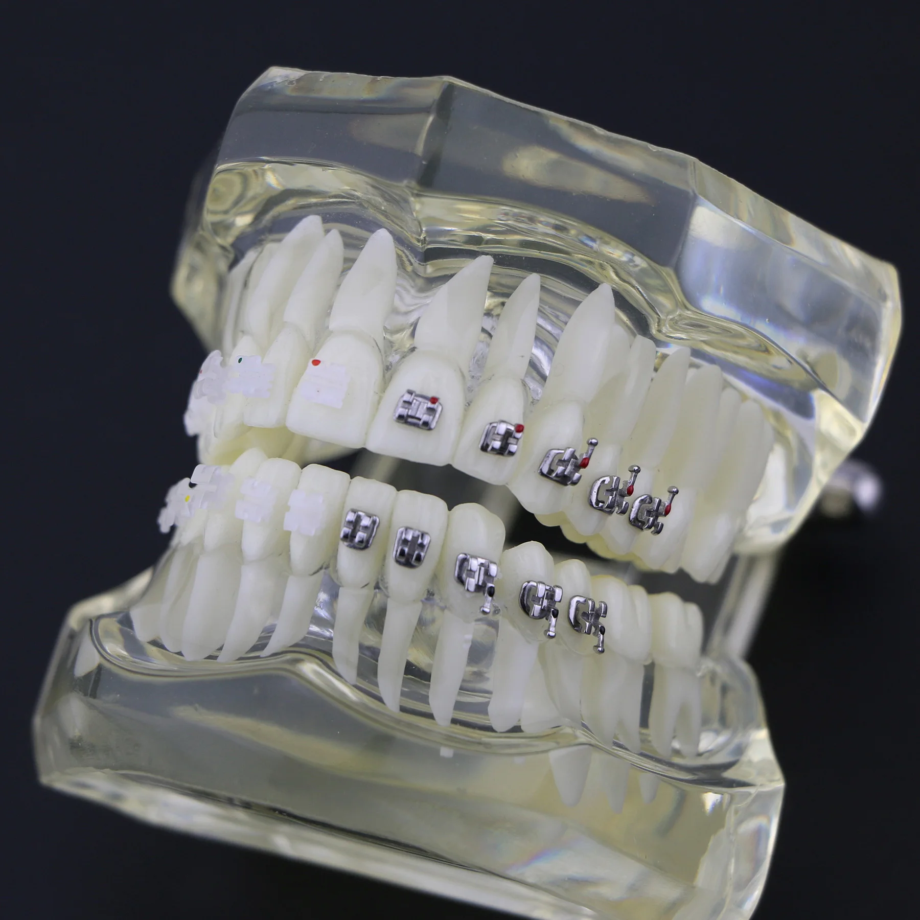 Dental Orthodontic Teeth Model Typodont With Metal Ceramic Brackets Braces Comparison Demonstration Teaching Practice Study