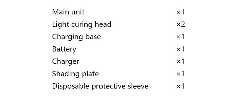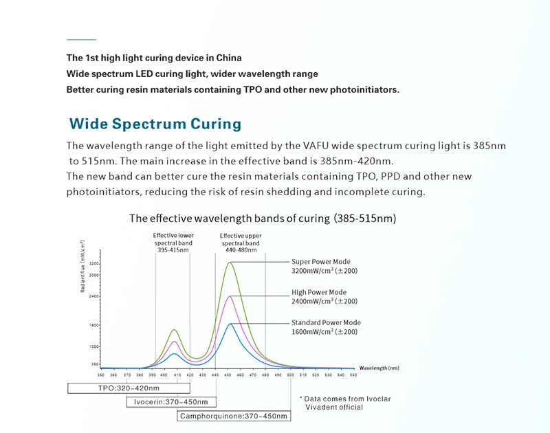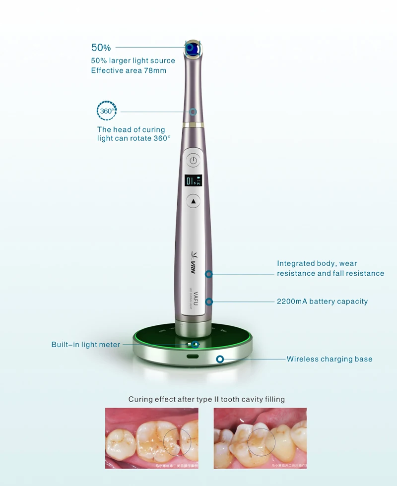 The commonly used clinical dental resin materials can match with the wavelength of this light curing, such as 3M, Dengsperm and other resins.