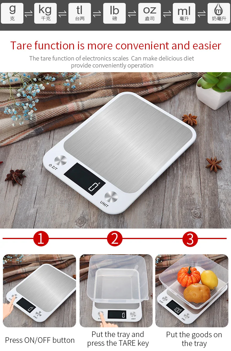 【Tare Function】Press Z/T(TARE)button to reset manually. It allows you to subtract the weight of the plate or container, making it easy to get accurate readouts of ingredients.
