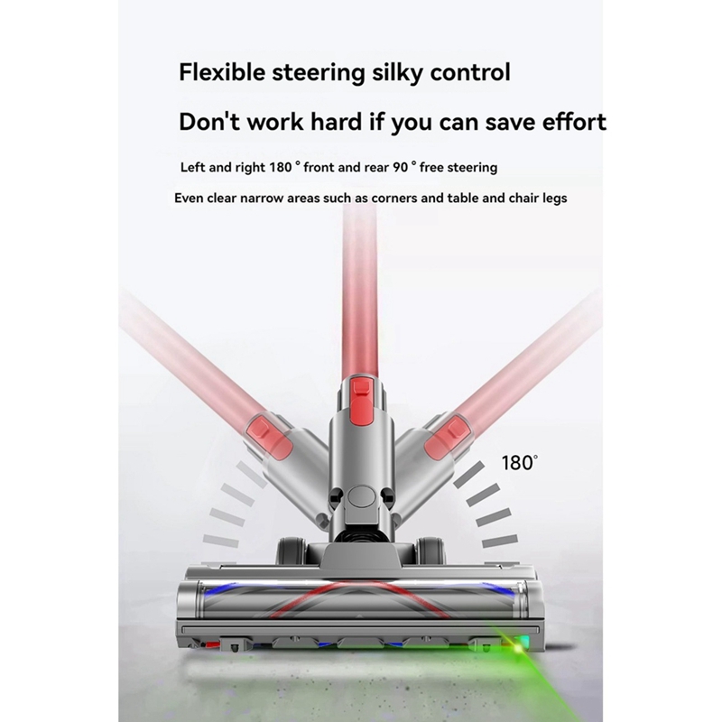 [Advanced Cleaning Capabilities]: Equipped with a flexible head and enhanced LED lights, this brush head illuminates hidden dust for a thorough clean. Its 180° rotation capability allows for effortless maneuverability across all floor types.