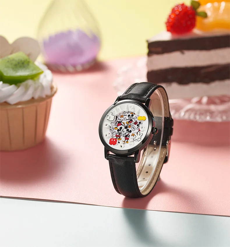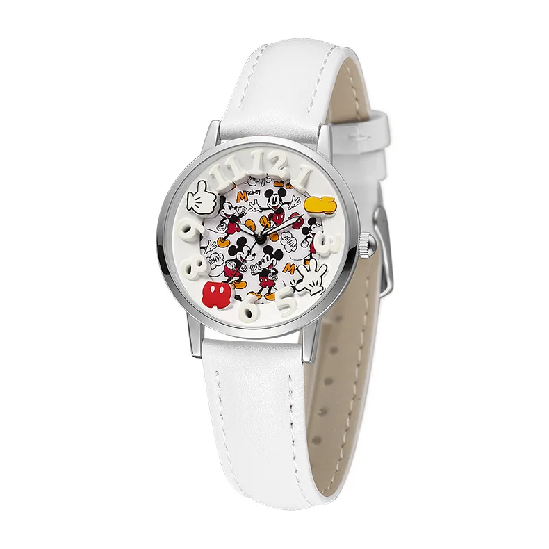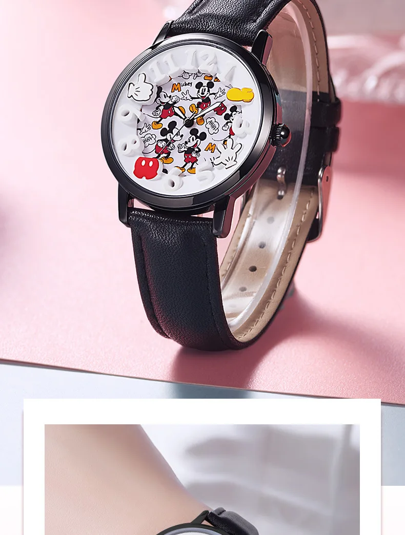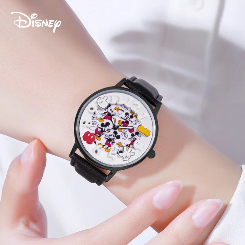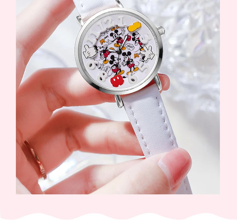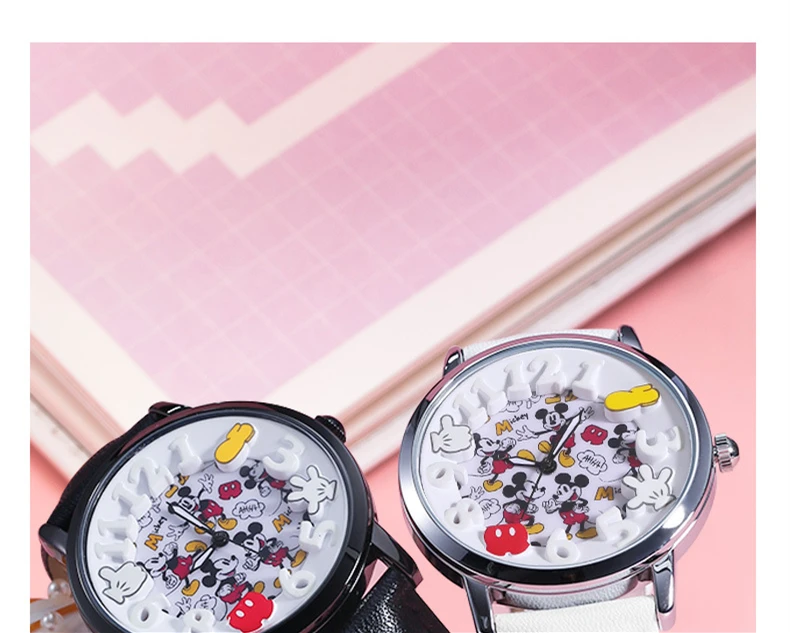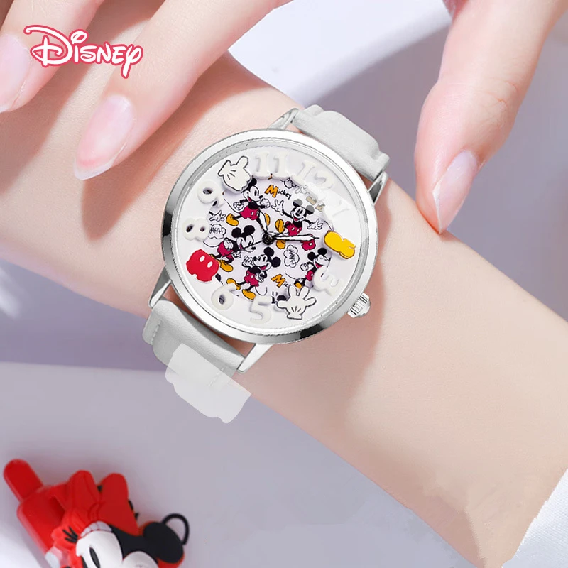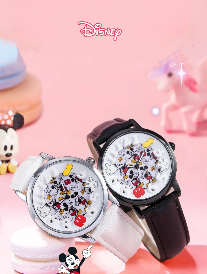 Disney Boys Fashion Cartoon Watch Cute Kids Mickey Mouse Watches Children Boys Girls Pu Leather Quartz WristWatch Clock Gift