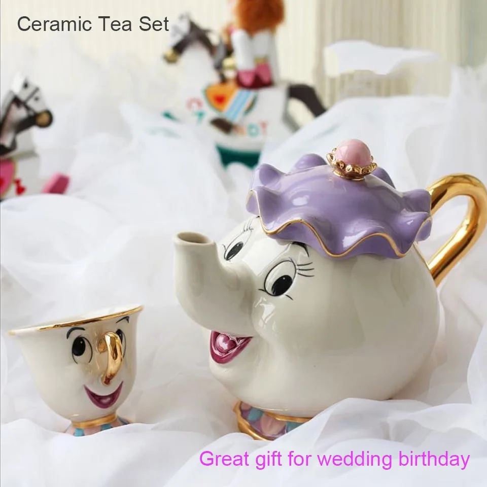 Ceramic Tea Sets Beauty And The Beast Teapot Mug Mrs Potts Chip Tea Pot Cup Coffee Pot Cup Wedding Gift Table Decoration