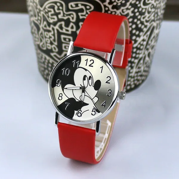 Disney Mickey Women Watches for Girls Leather Strap Ladies Quartz Clock