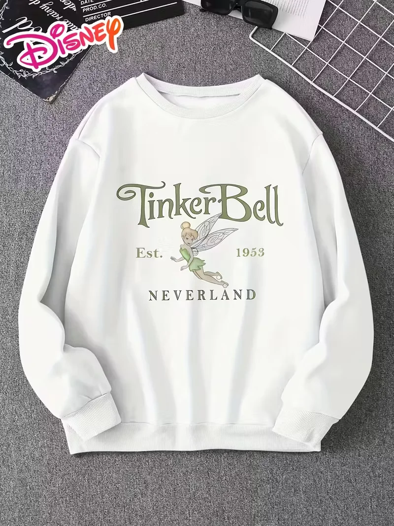 Disney Sparkling Tinker Bell Stars Sweatshirt Women’s Men Cotton Hoodies Pullover Autumn Winter Fleece Oversized O-Neck Top Coat