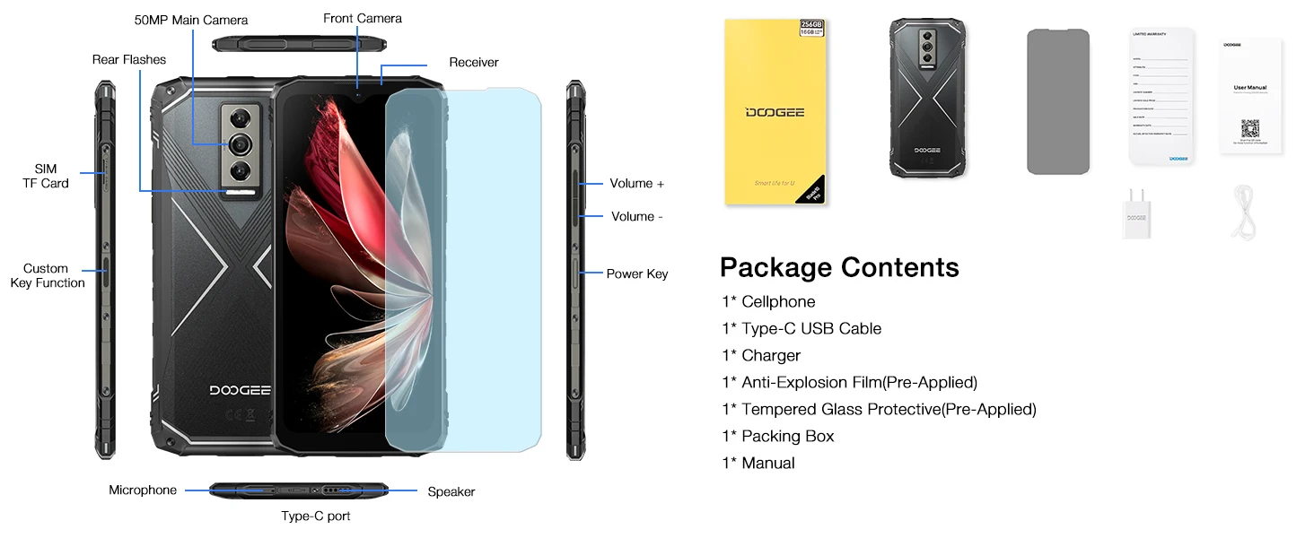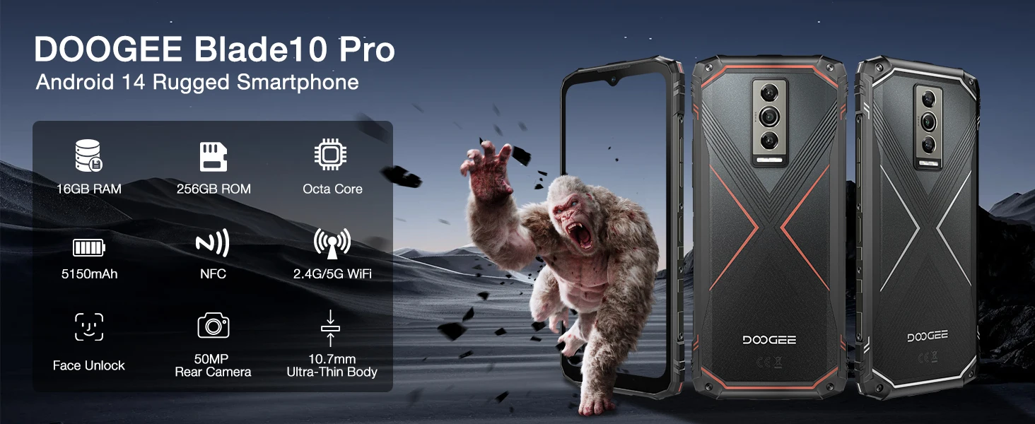 World Premiere DOOGEE Blade 10 Pro Rugged Phone 6.56″ 90Hz IPS Screen 6GB+256GB Octa Core 50MP AI Main Camera 5150mAh Android 14