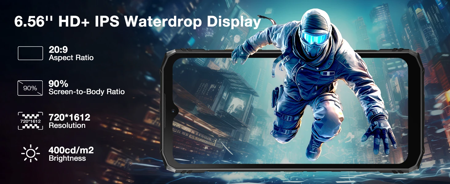 • Screen: 6.56” HD+ 90Hz IPS water drop screen