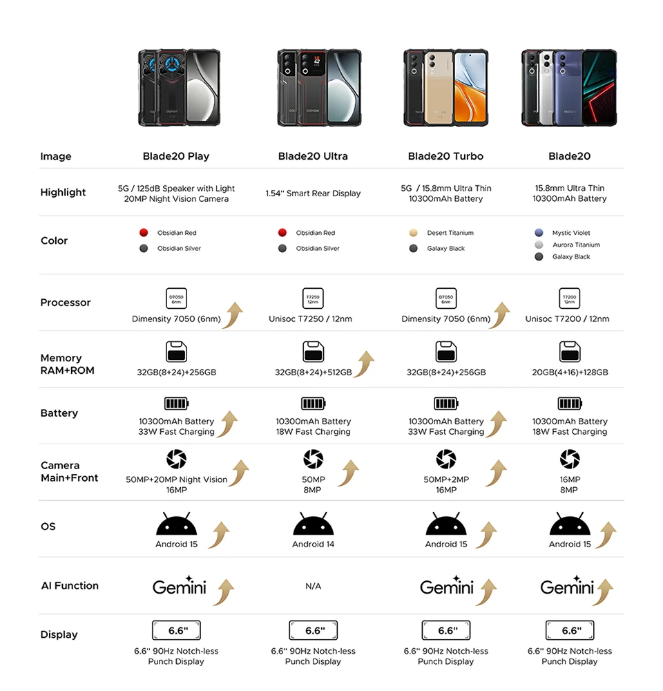 Global Version DOOGEE Blade20 Play Rugged Phone 5G Android 15 Gemini Al 10300mAh Battery 6.6” Display AI Camera Mobile phone